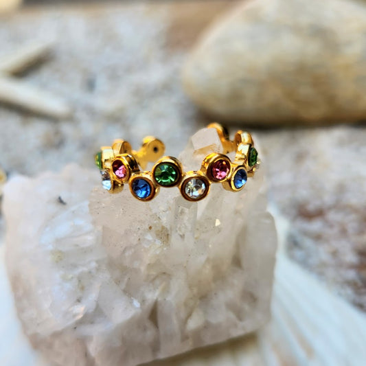 LITTLE WAVES - ADJUSTABLE BLACK / RAINBOW / CRYSTAL WATERPROOF GOLD RINGS