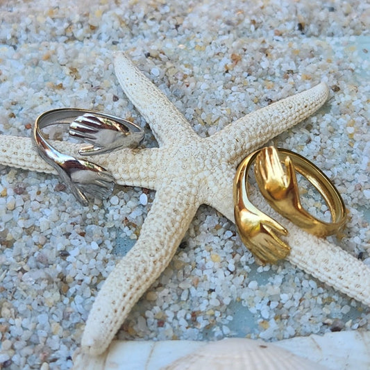 HANDS OF LOVE - ADJUSTABLE WATERPROOF HUG GOLD/ SILVER RINGS