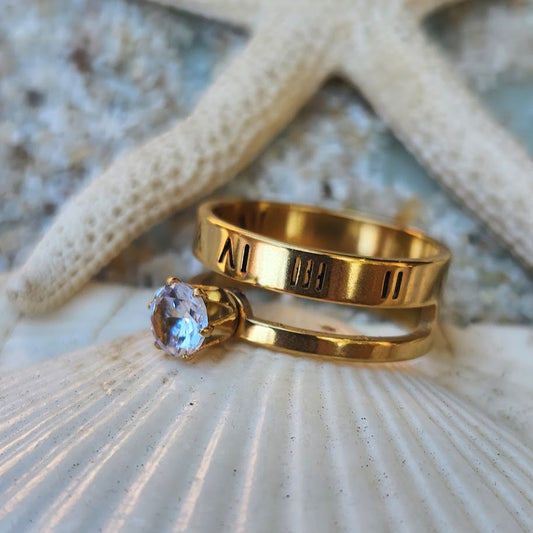 ROMAN NUMERALS - CZ WATERPROOF DOUBLE GOLD RING