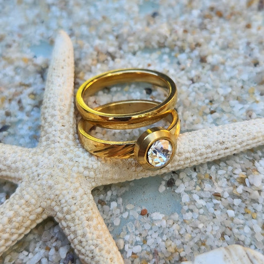 ATHENA - CZ WATERPROOF 18K GOLD DOUBLE RING SET