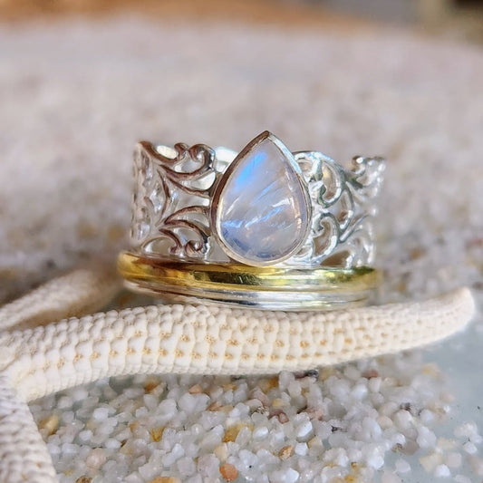 MOONSTONE TEARS - 925 SILVER VERMEIL SPINNER RING