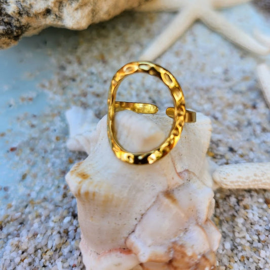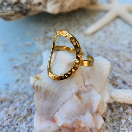 HAMMERED GOLDEN SPHERE - ADJUSTABLE GOLD RING