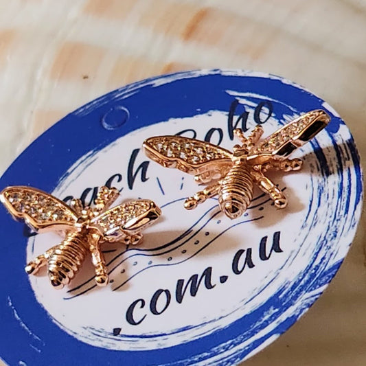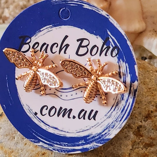 BEE ON ROSES - ROSE GOLD CUBIC ZIRCONIA EARRINGS