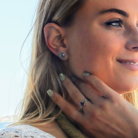 AMETHYST STUDS - GOLD PLATED 925 STUD EARRINGS