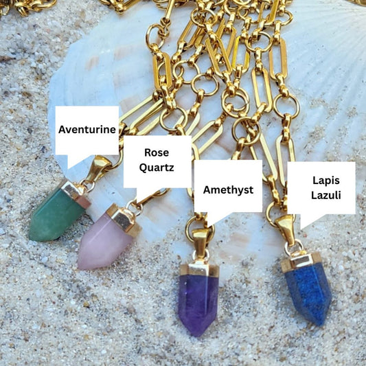 NATURAL STONE PENDANTS - WATERPROOF GOLD NECKLACES