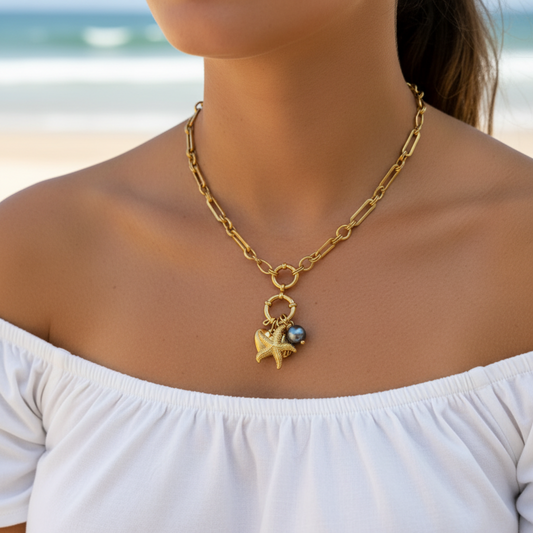 PEARLS OF GOLD - 18K GOLD CHARM PEARL WATERPROOF NECKLACE