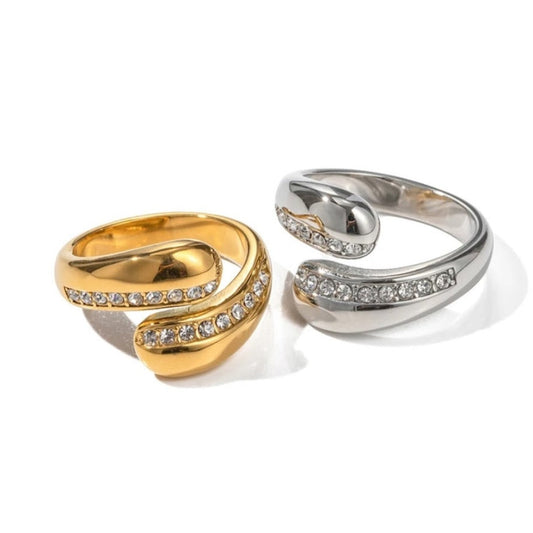 LITTLE WAVES - ADJUSTABLE BLACK / RAINBOW / CRYSTAL WATERPROOF GOLD RINGS