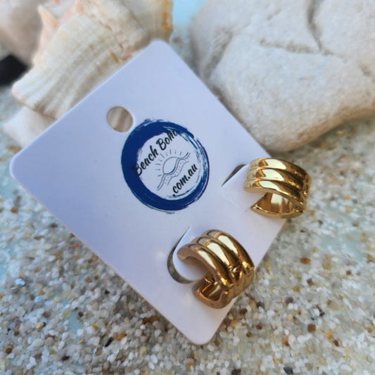 HUGGIES SET OF 3 - 2MM GOLD OR SILVER WATERPROOF HUGGIE SET OF EARRINGS 16/18/20 mm