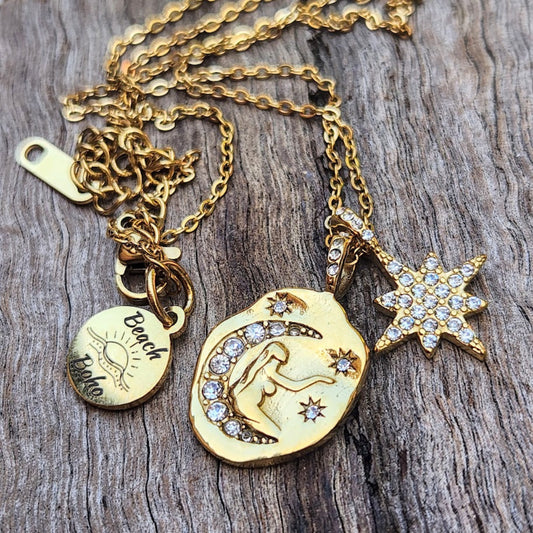 WISH UPON A STAR - WATERPROOF 18K GOLD DOUBLE PENDANT NECKLACE