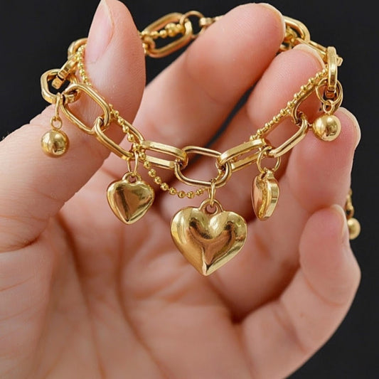 THREE HEARTS OF LOVE - 18 CT GOLD WATERPROOF CHAIN BRACELET