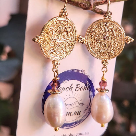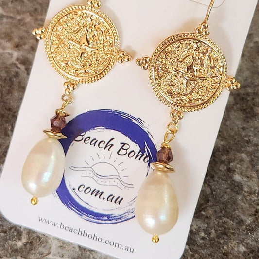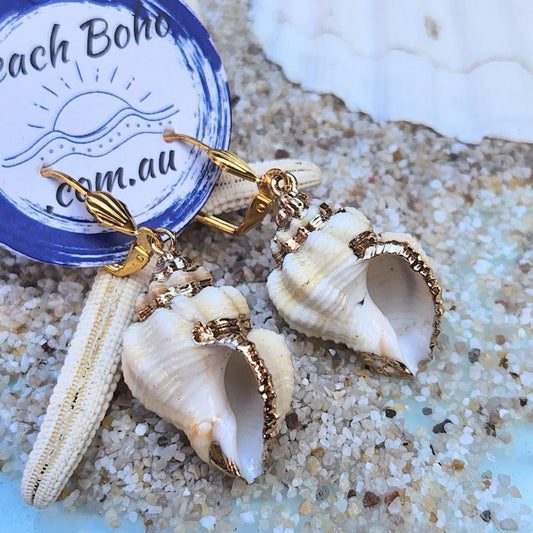 ELECTROPLATED SHELLS - GOLD HOOK BOHO EARRINGS