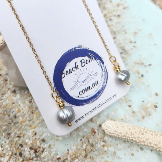 SILVER GREY PEARL GOLD THREAD EARRINGS