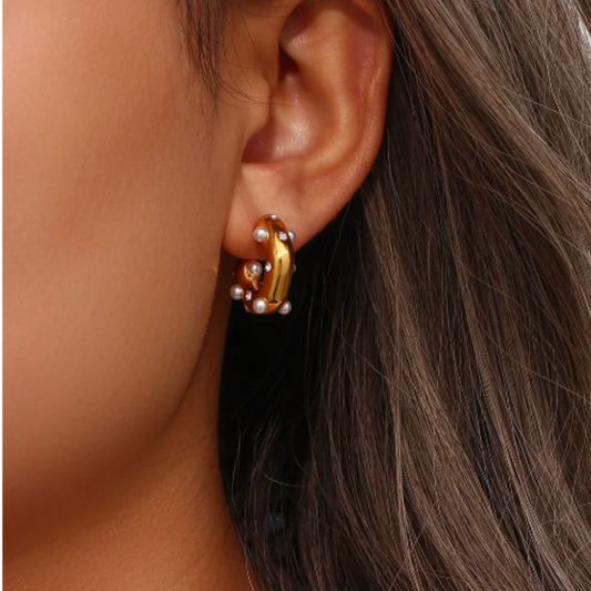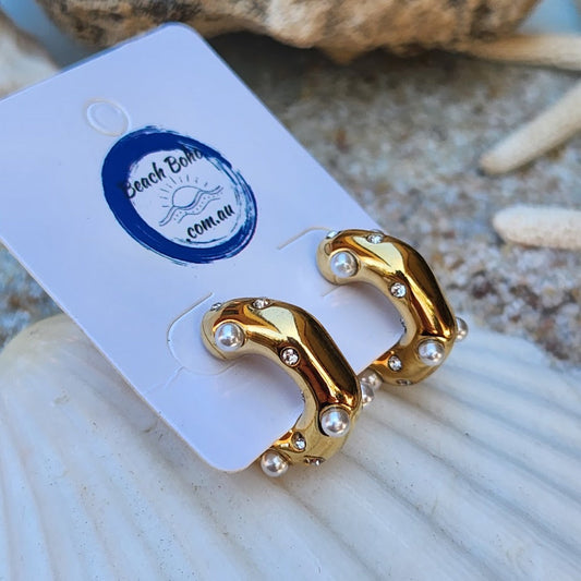 BAROQUE PEARL HUGGIE - SILVER GOLD & ROSE GOLD - WATERPROOF EARRINGS