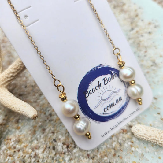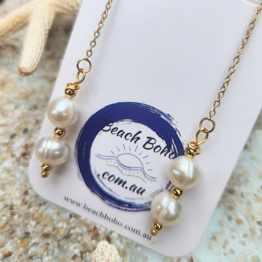 DOUBLE BAROQUE WHITE PEARL GOLD THREAD EARRINGS