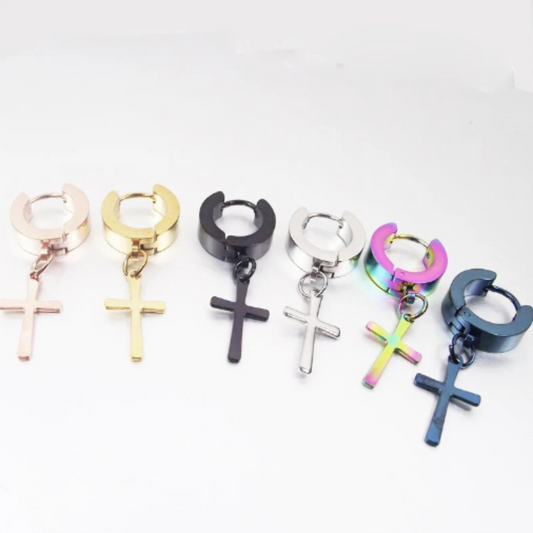 CRYSTAL HOOPS - 18K BLACK OR PURPLE WATERPROOF STUD HOOP EARRINGS
