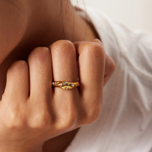 HEART SPACES - CZ ADJUSTABLE 18K WATERPROOF RING