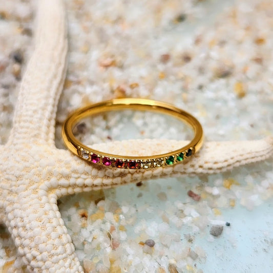 RAINBOW OR CLEAR STARS - ADJUSTABLE CUBIC ZIRCONIA WATERPROOF 18K GOLD RINGS