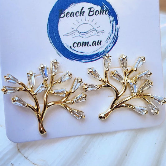 DAISIES - CUBIC ZIRCONIA GOLD STUD EARRINGS