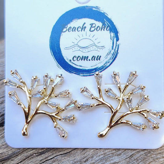 QUARTZ CRYSTAL STUDS - GOLD PLATED 925 STUD EARRINGS