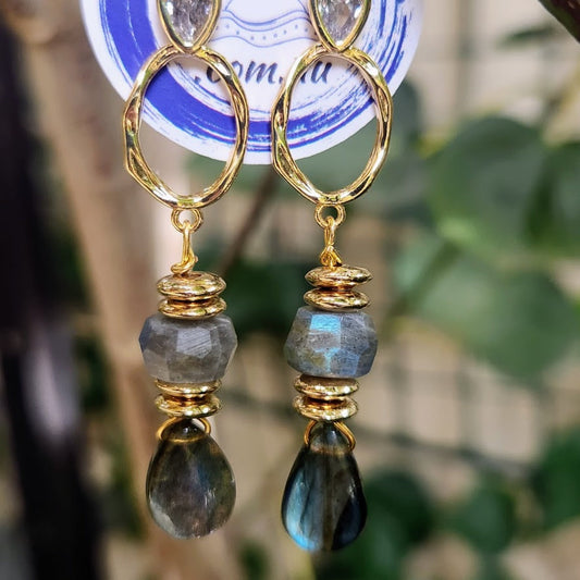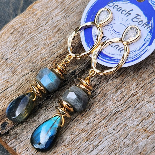 MANY COLOURS - LABRADORITE DOUBLE STONE STUD BOHO EARRINGS