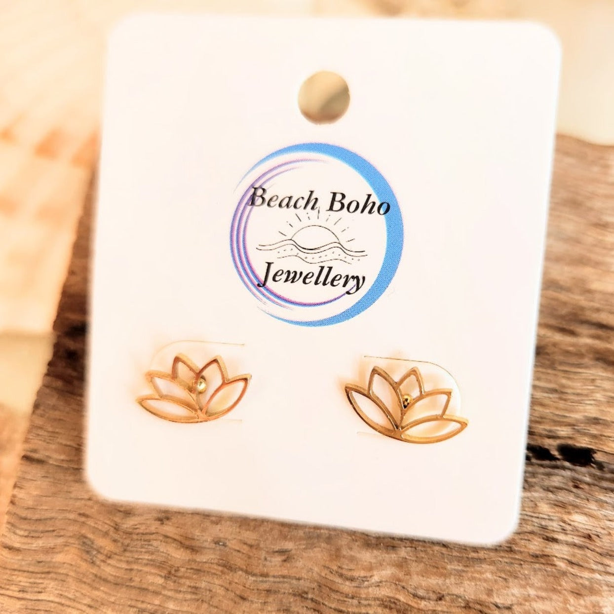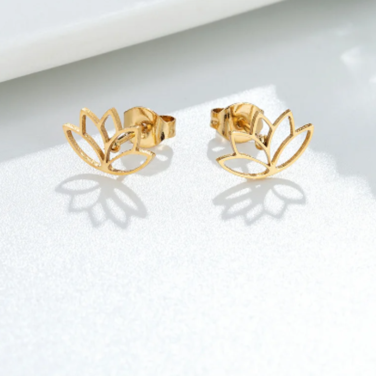 GOLD LOTUS - 18K WATERPROOF STUD EARRINGS