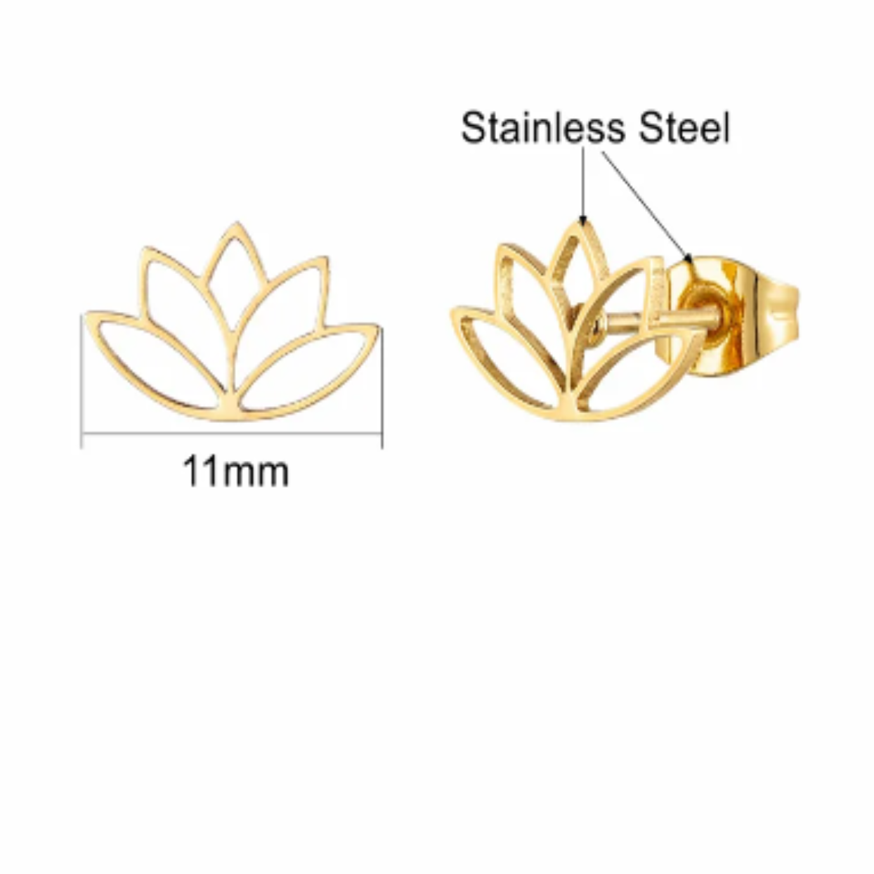 Sweet & Petite...18k Gold Lotus Stud Earrings made with Titanium Steel Tarnish Resistant Jewellery 11 mm width