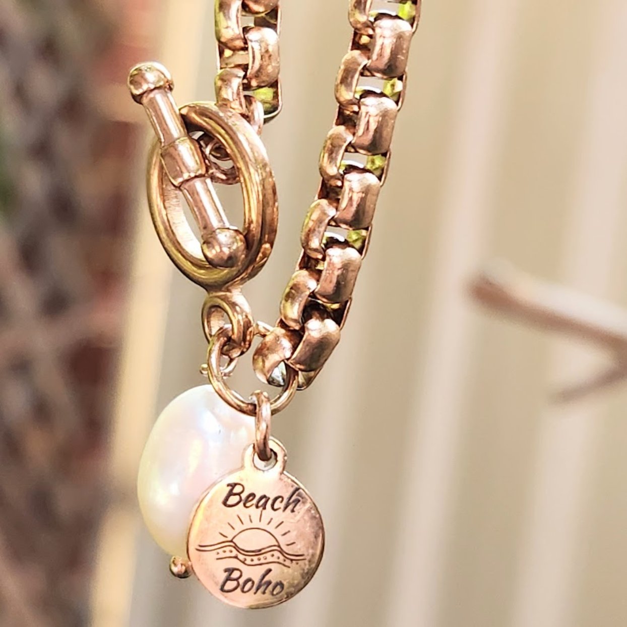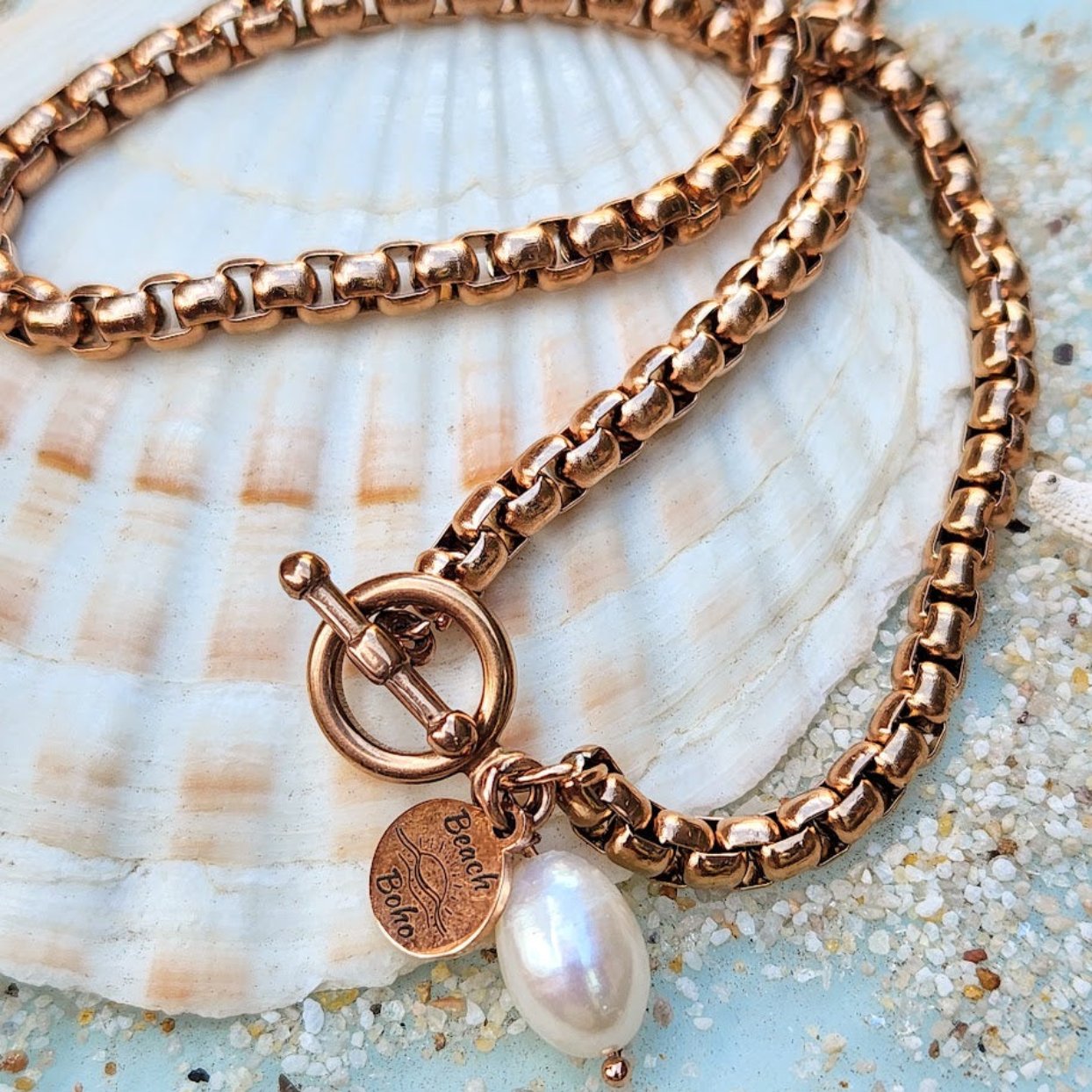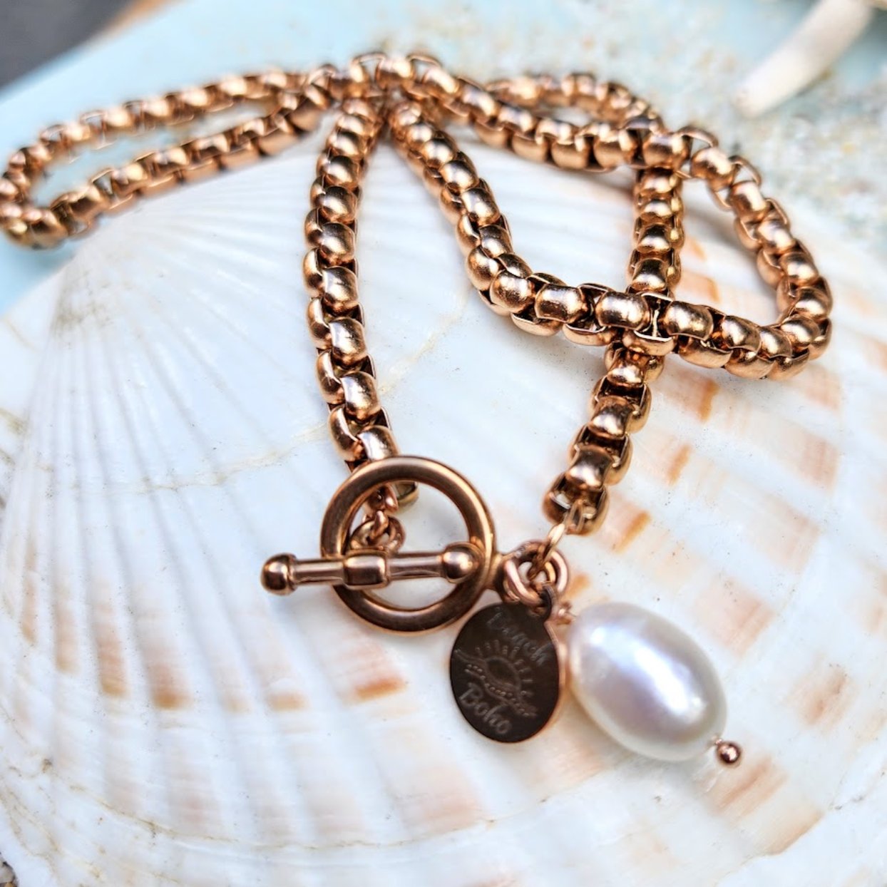 Handmade and Beautiful this substantial Belcher 5mm chain Rose Gold Toggle Clasp & Natural Baroque Pearl Charm Necklace Waterproof Chain Bracelet 45cm with 5 cm (17.5 inch)