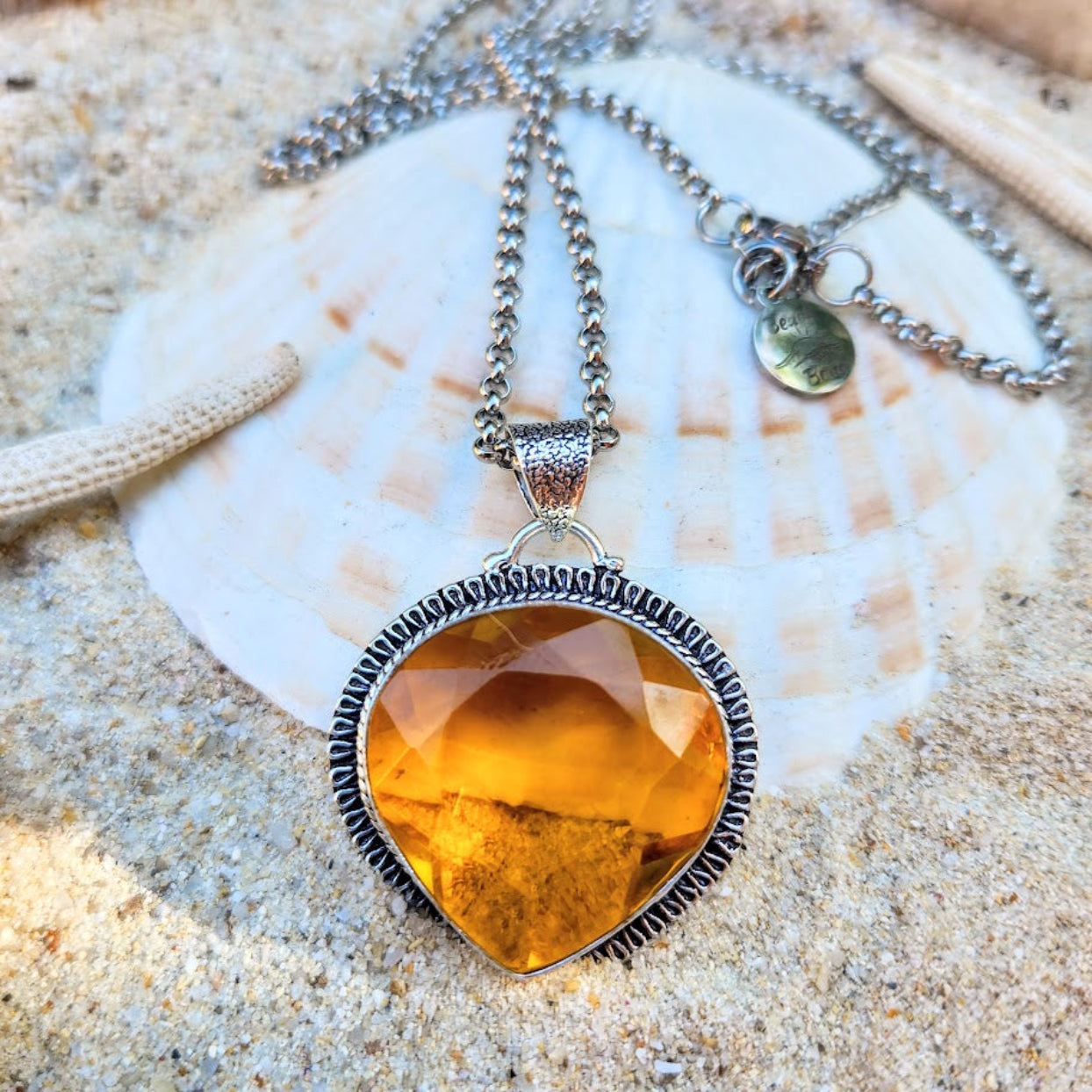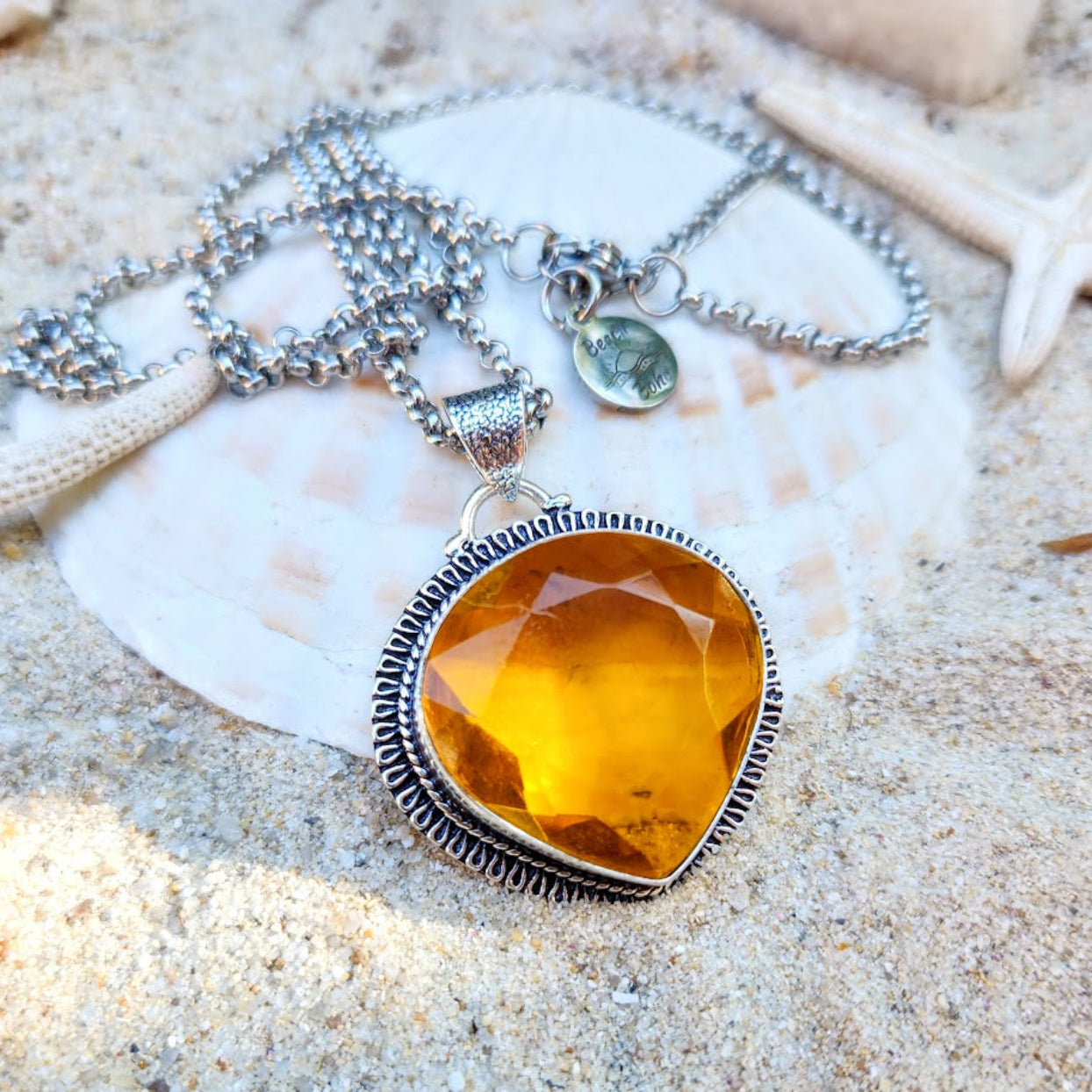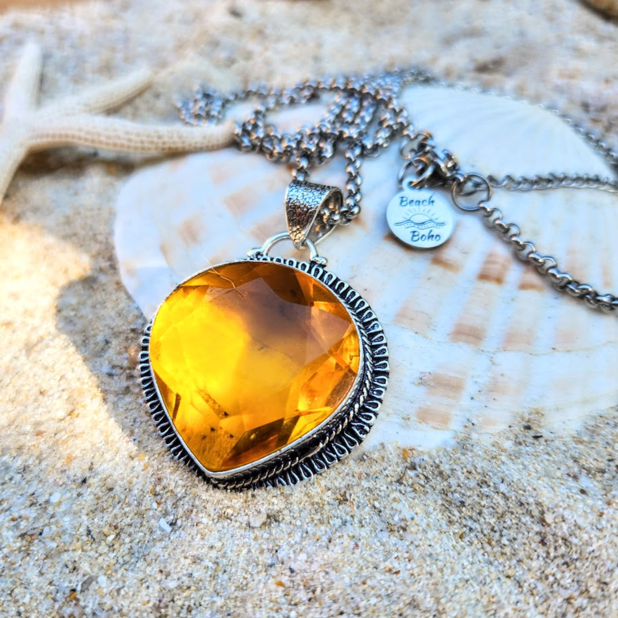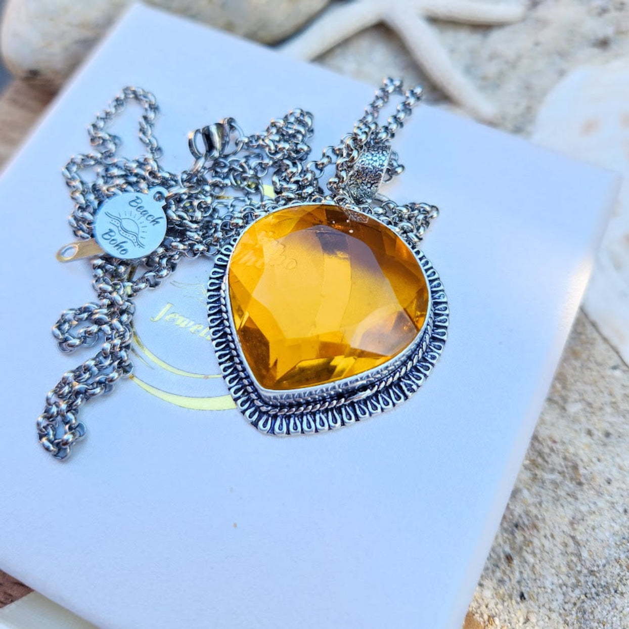 STATEMENT CITRINE PENDANT - BOHEMIAN 925 SILVER NECKLACE