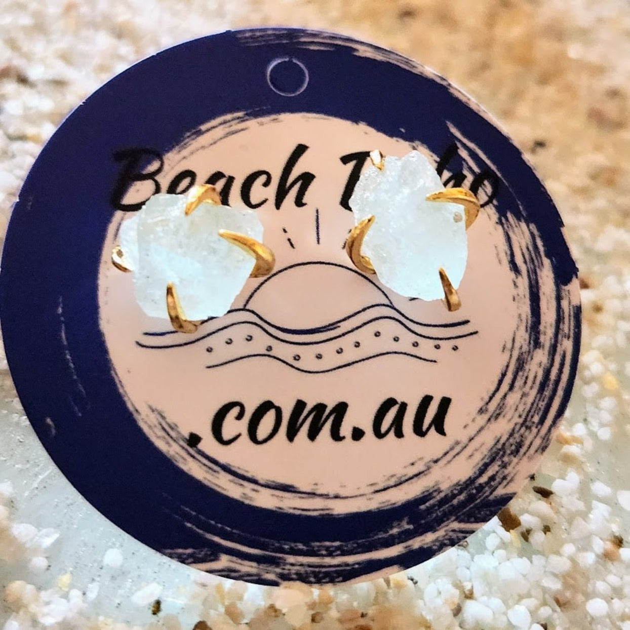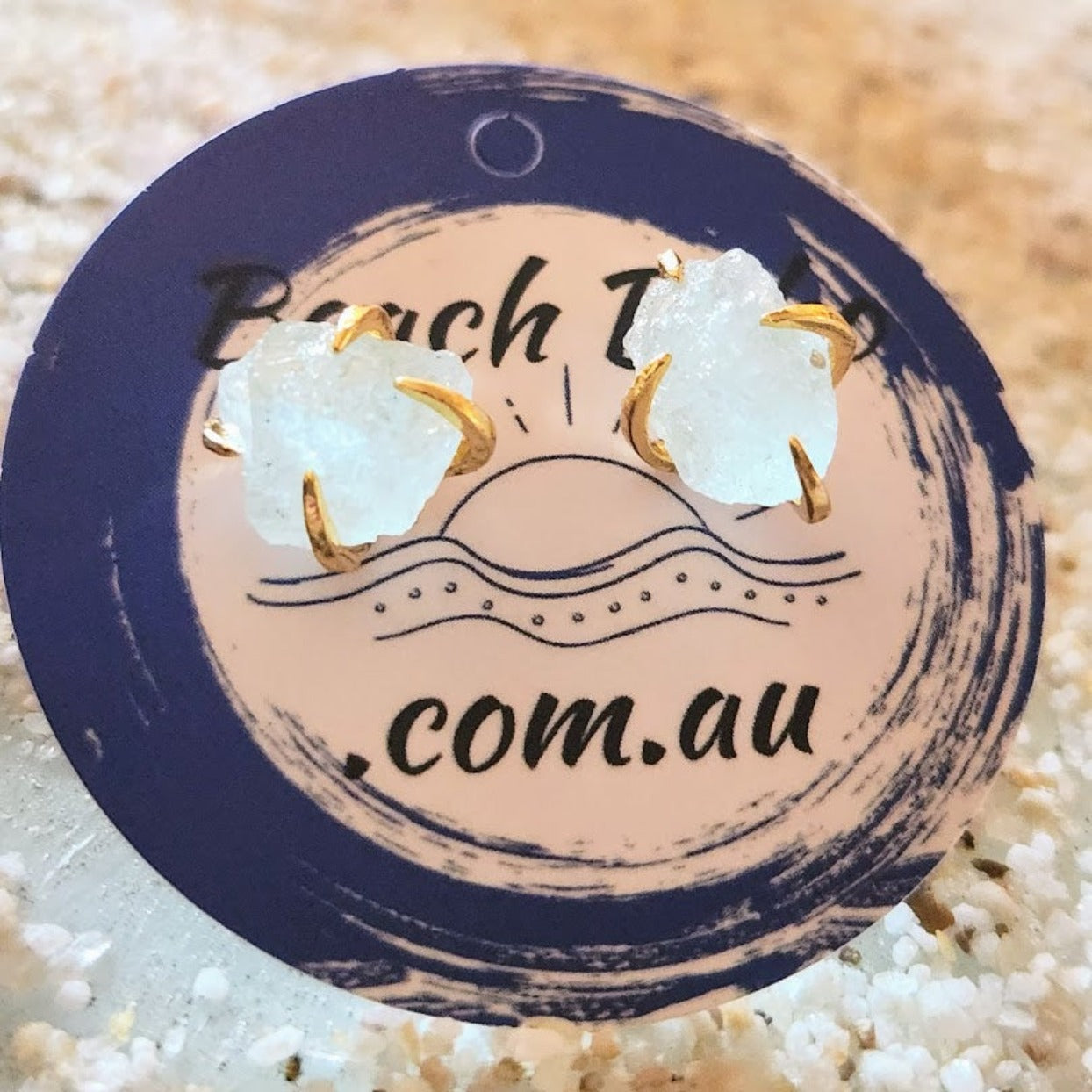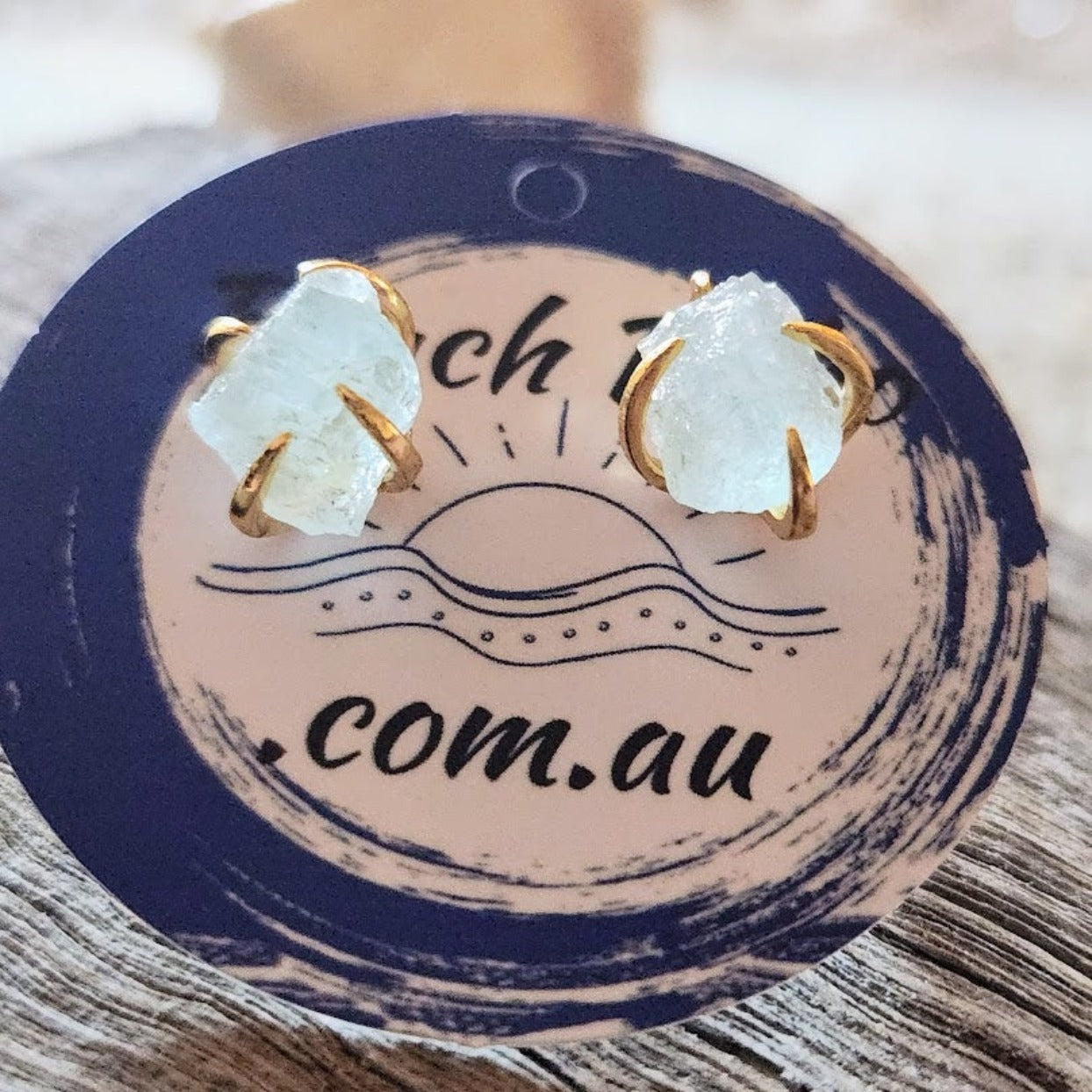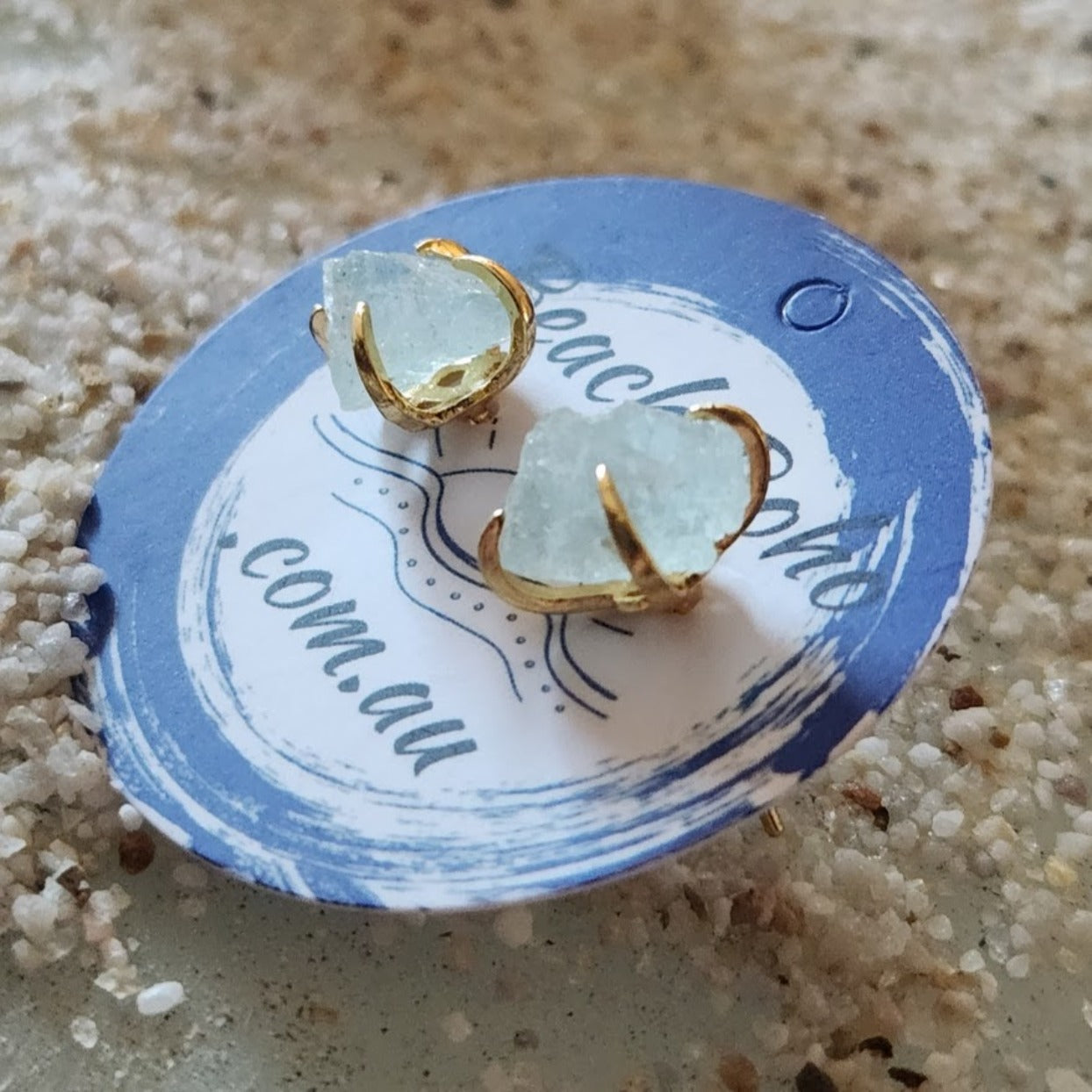 Aquamarine Claw Stud Earrings / 925 Gold Plated Pole Stud Earrings / Beautiful Light Aquamarine