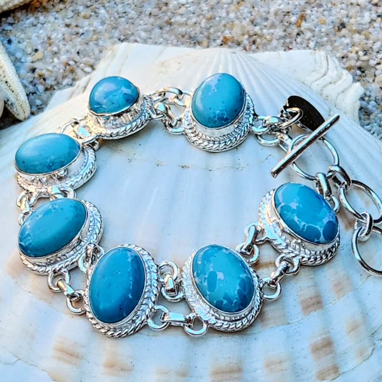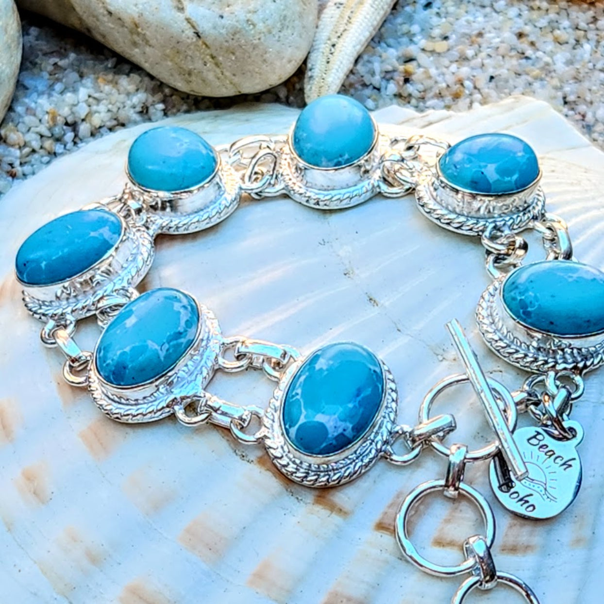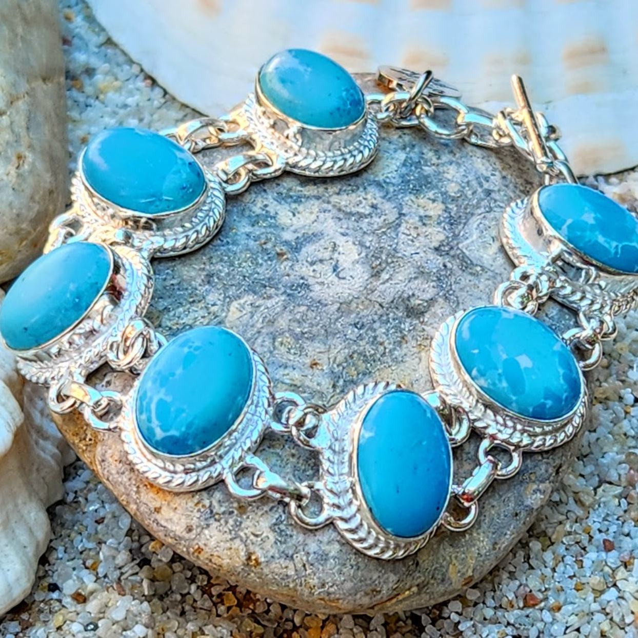 Stunning Handmade superb Larimar Stones 5 charms - 1cm width 2 cm length Charms - 925 Sterling Silver Handmade Bracelet -