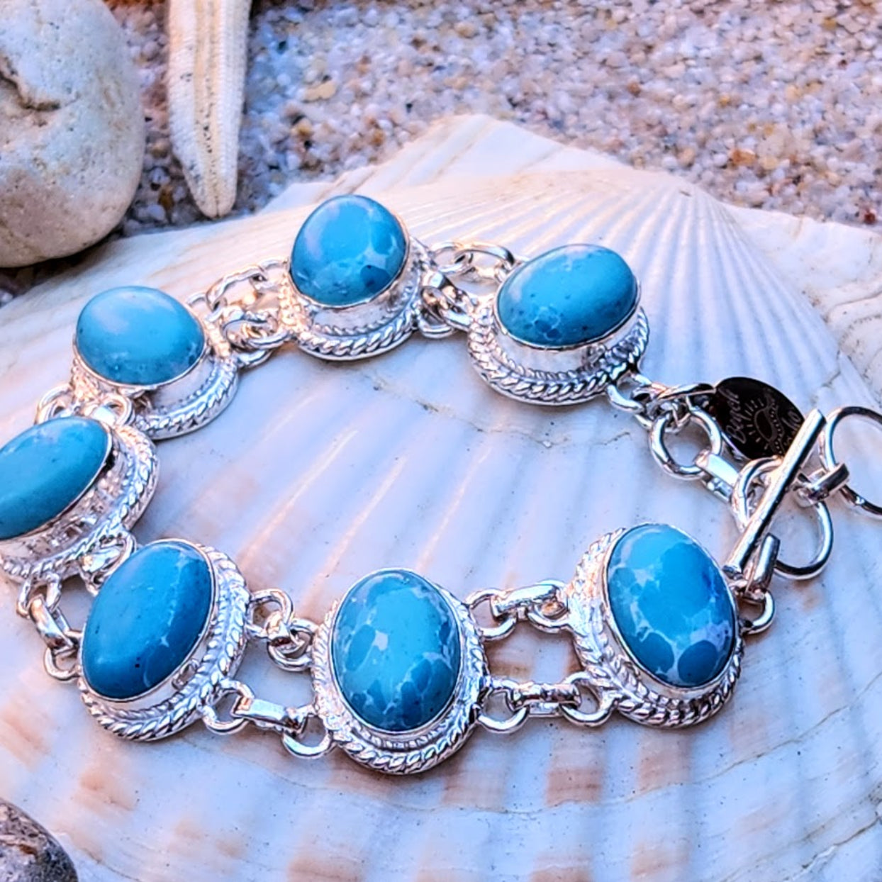 Larimar symbolizes clear communication and inner wisdom, embodying tranquil energies of the sky and sea. Larimar also known as the Mermaid Stone, or the Atlantis stone
