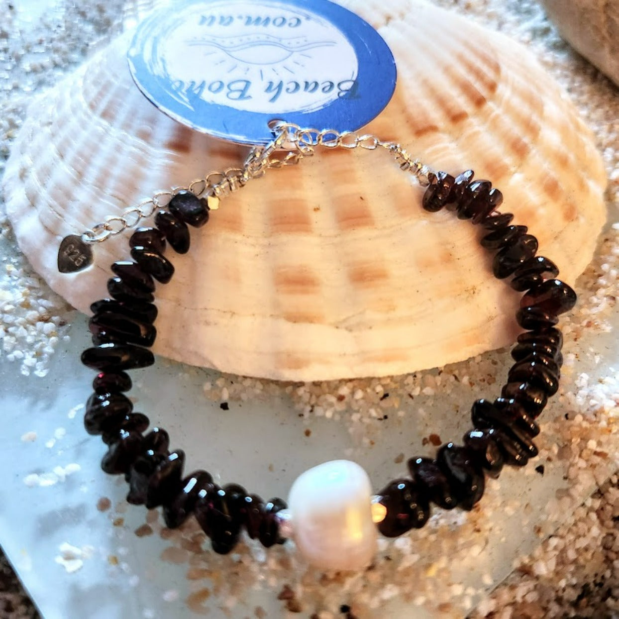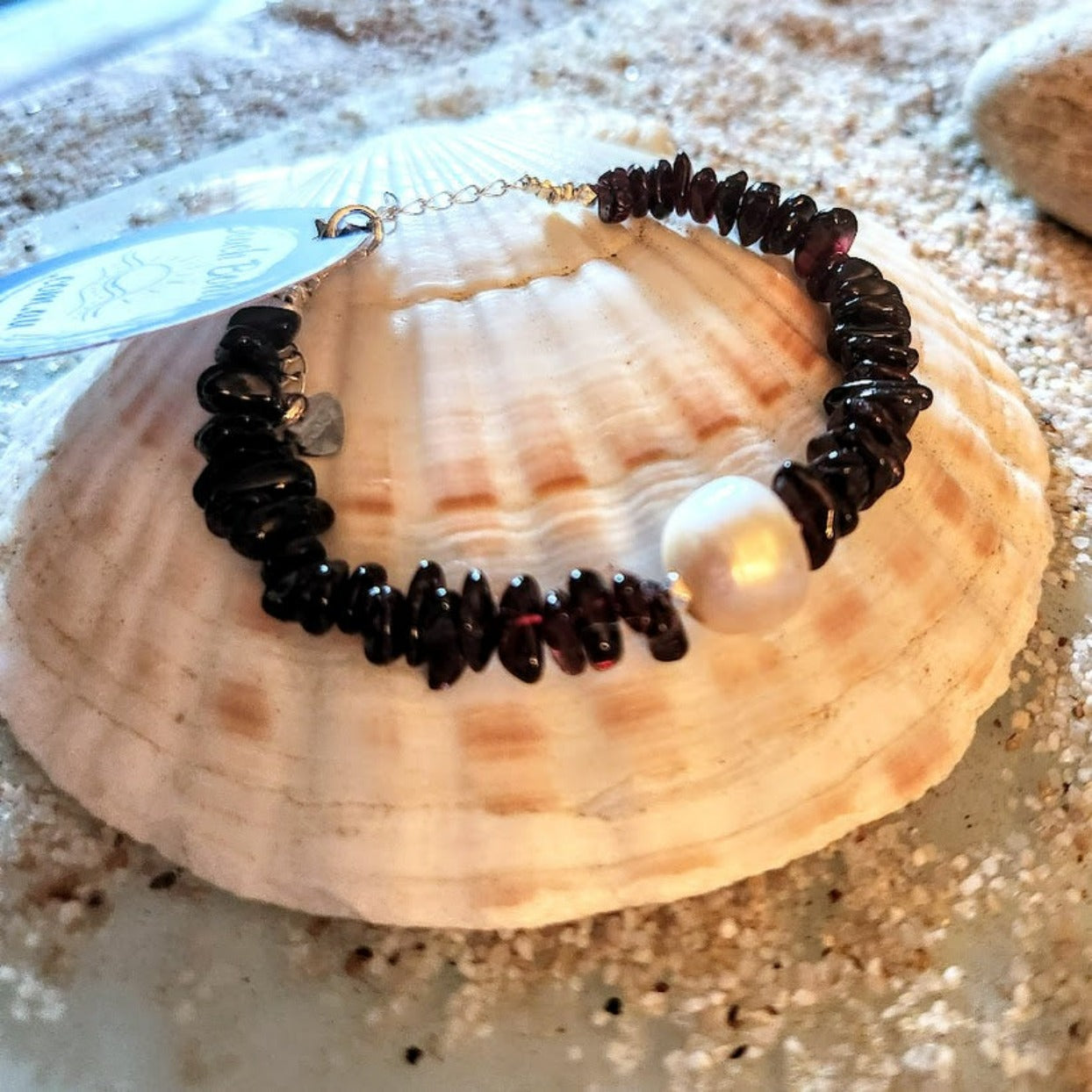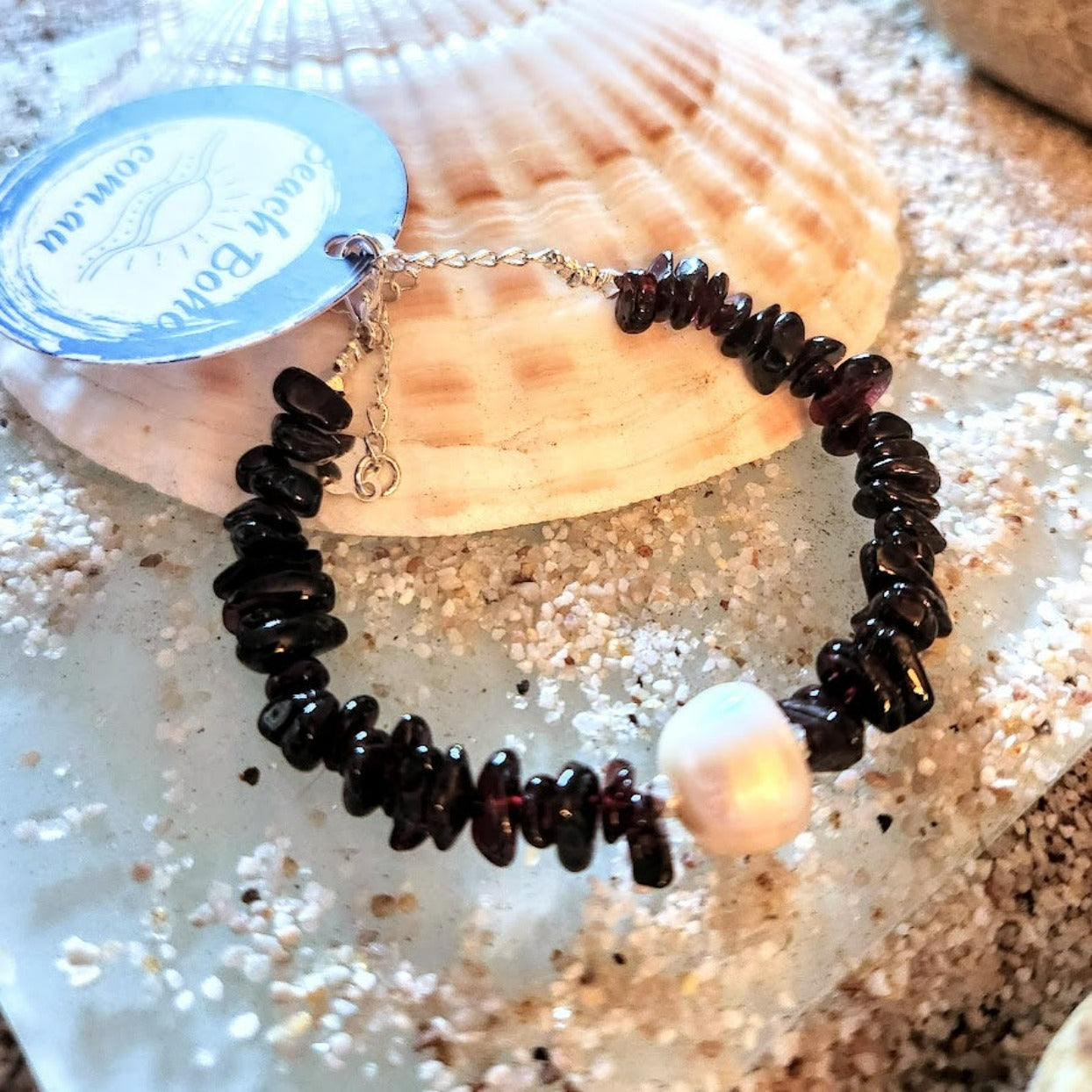 BE UNIQUE - GARNET / BAROQUE PEARL HILLTRIBE BRACELET