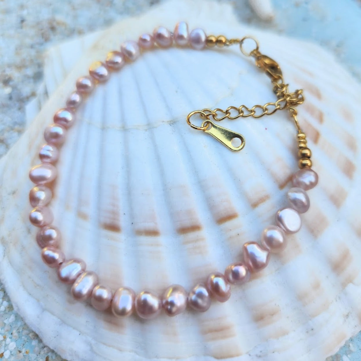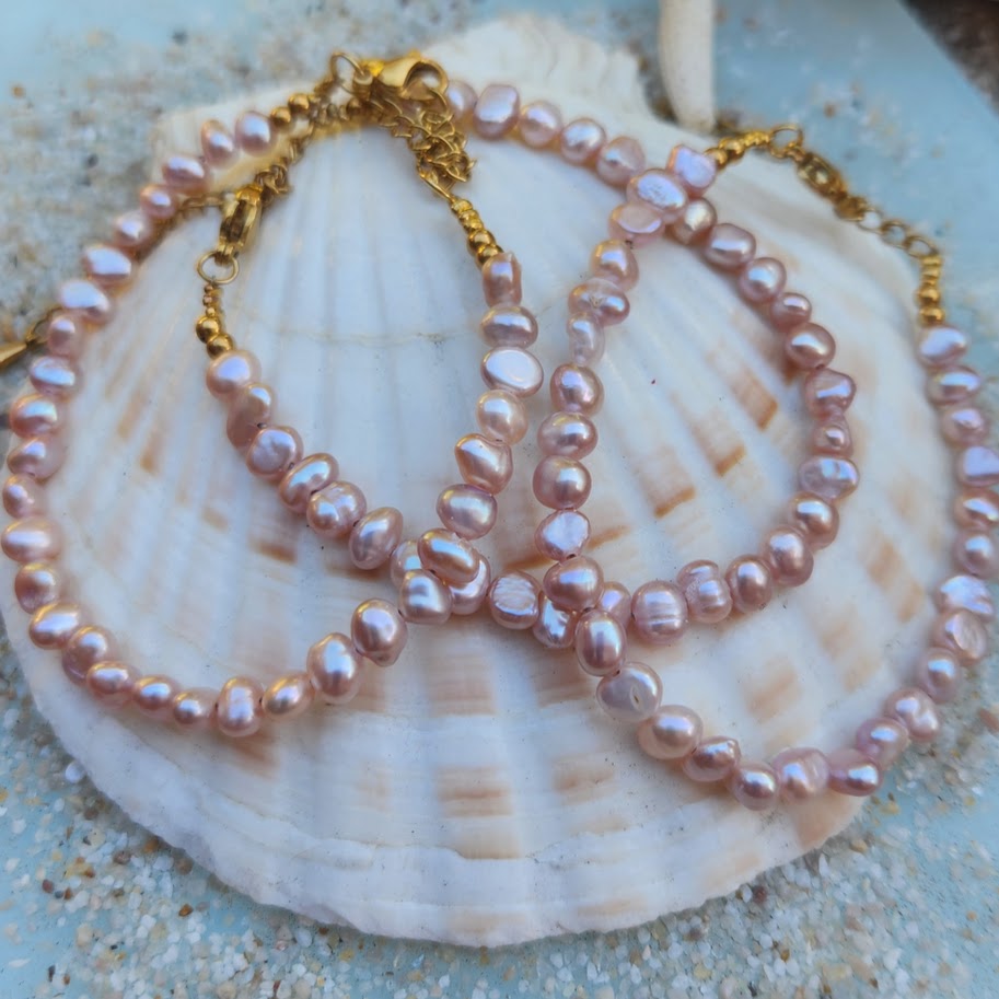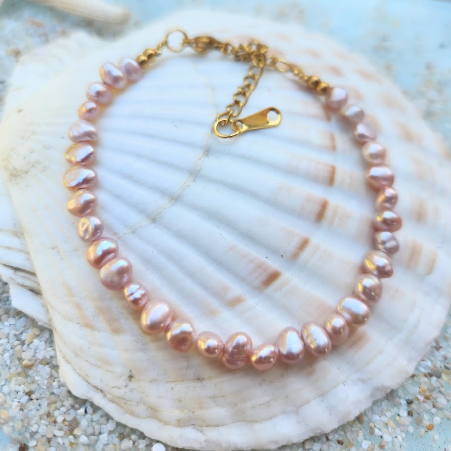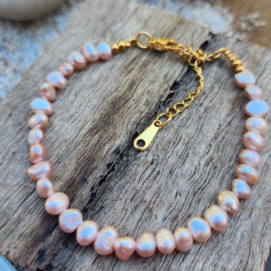 PINK BAROQUE PEARL WATERPROOF 18K GOLD BRACELET