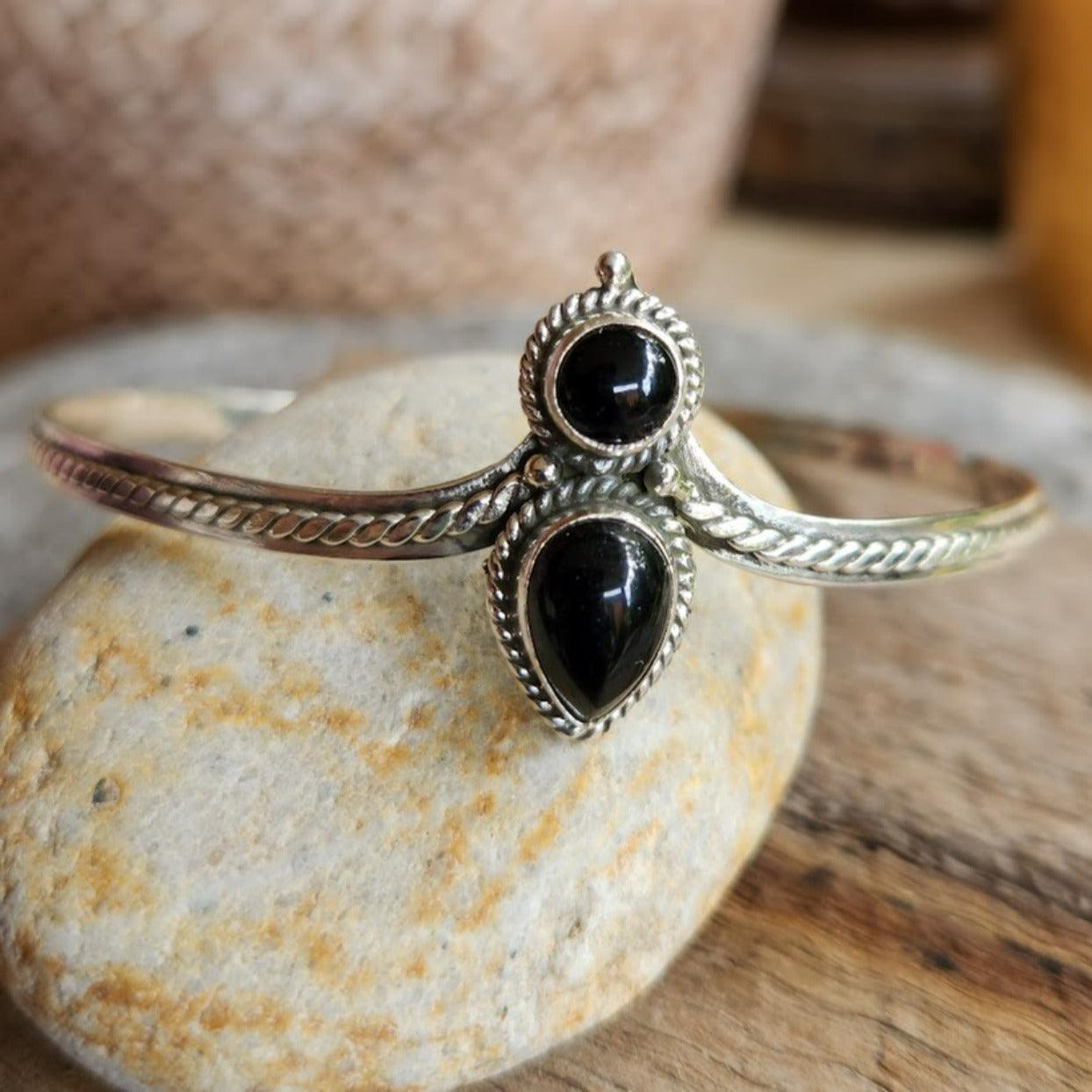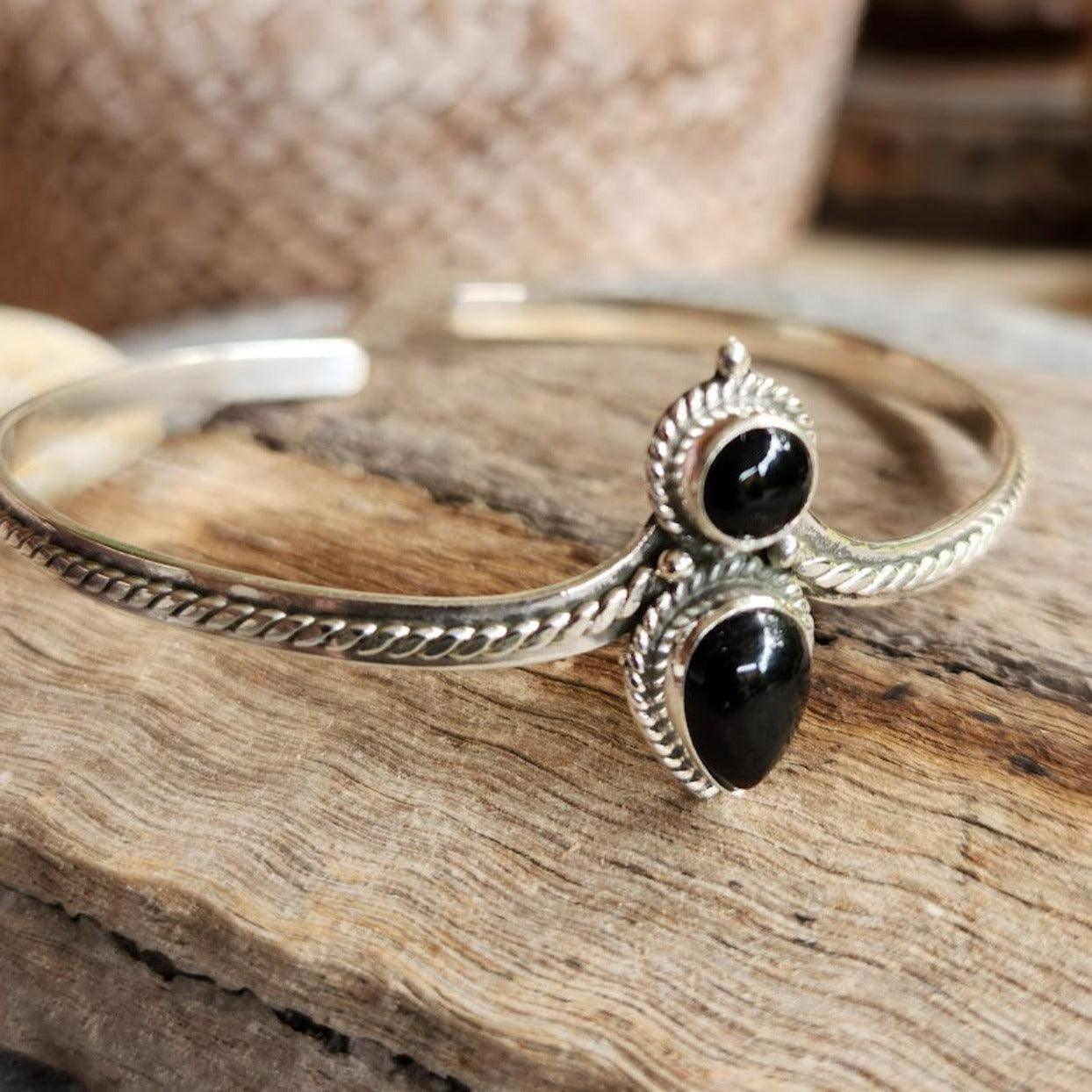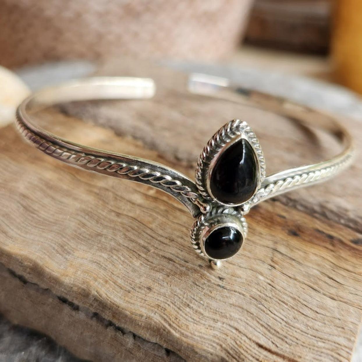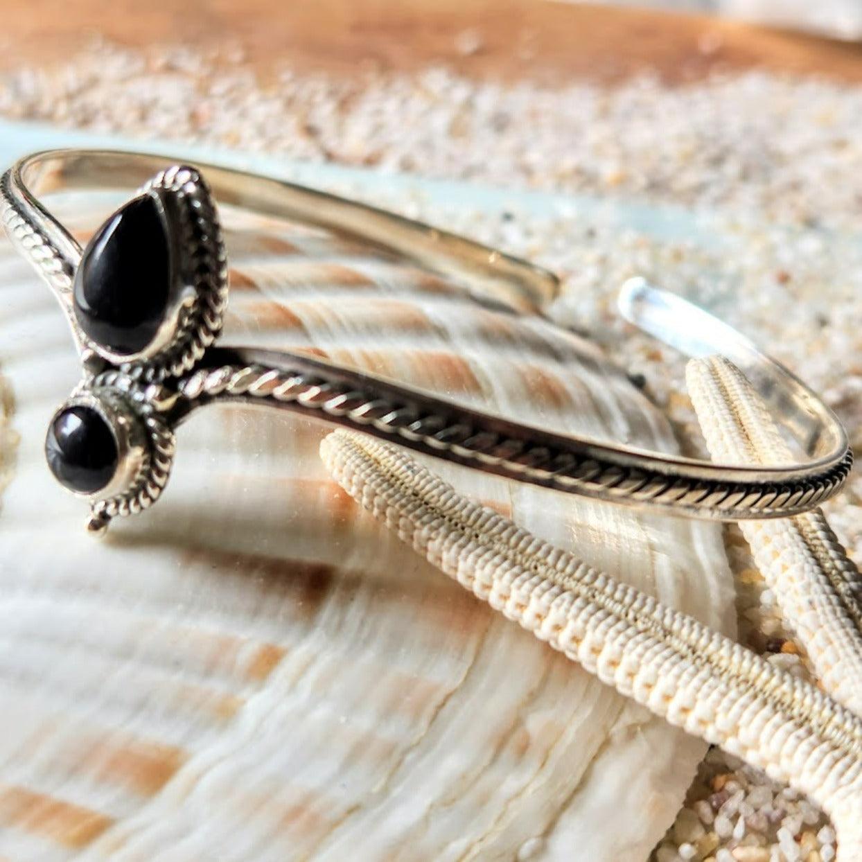 Teardrop & Round Onyx Stones.. 925 Sterling Silver Cuff