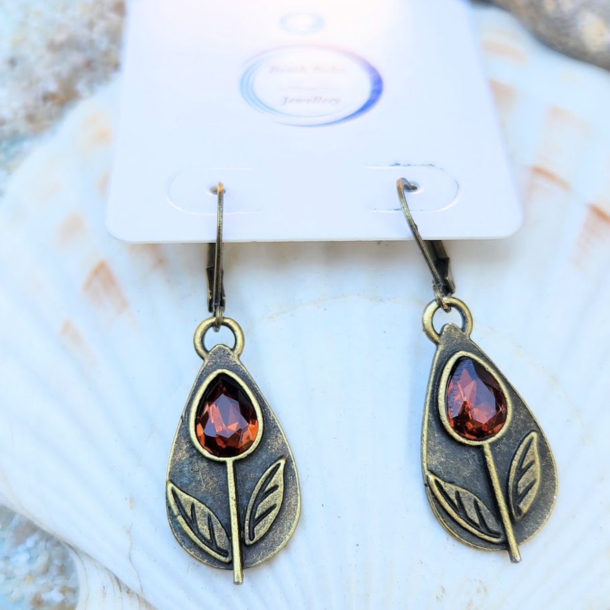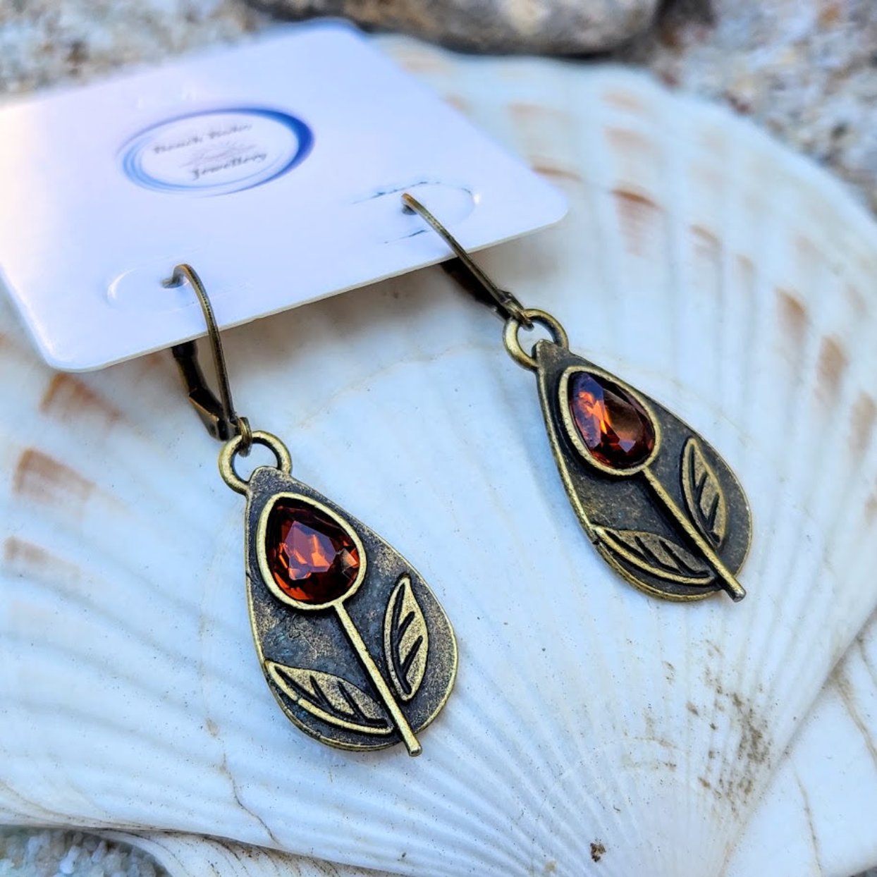 Copper Amber Crystal Handmade Drop Leaf Charm Hook Earrings - 2.5 cm Drop, lightweight and comfortable to wear... Beautiful Boho Earrings