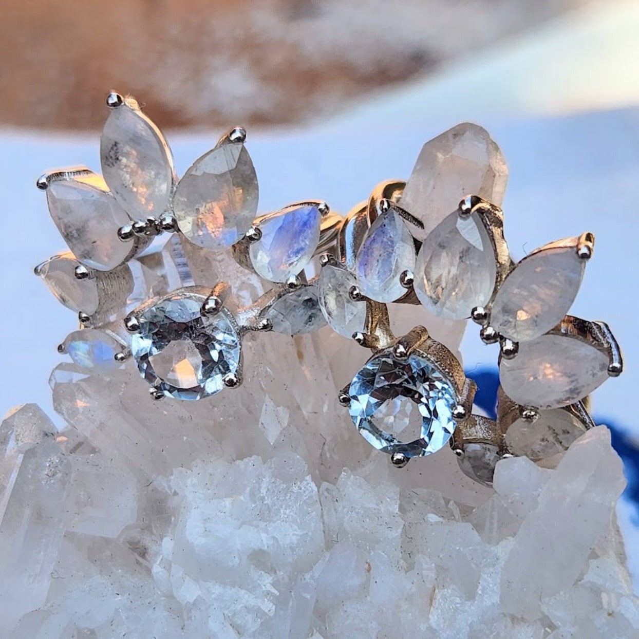 Each Piece is Unique / Made from Natural Blue Topaz Crystals and Moonstones