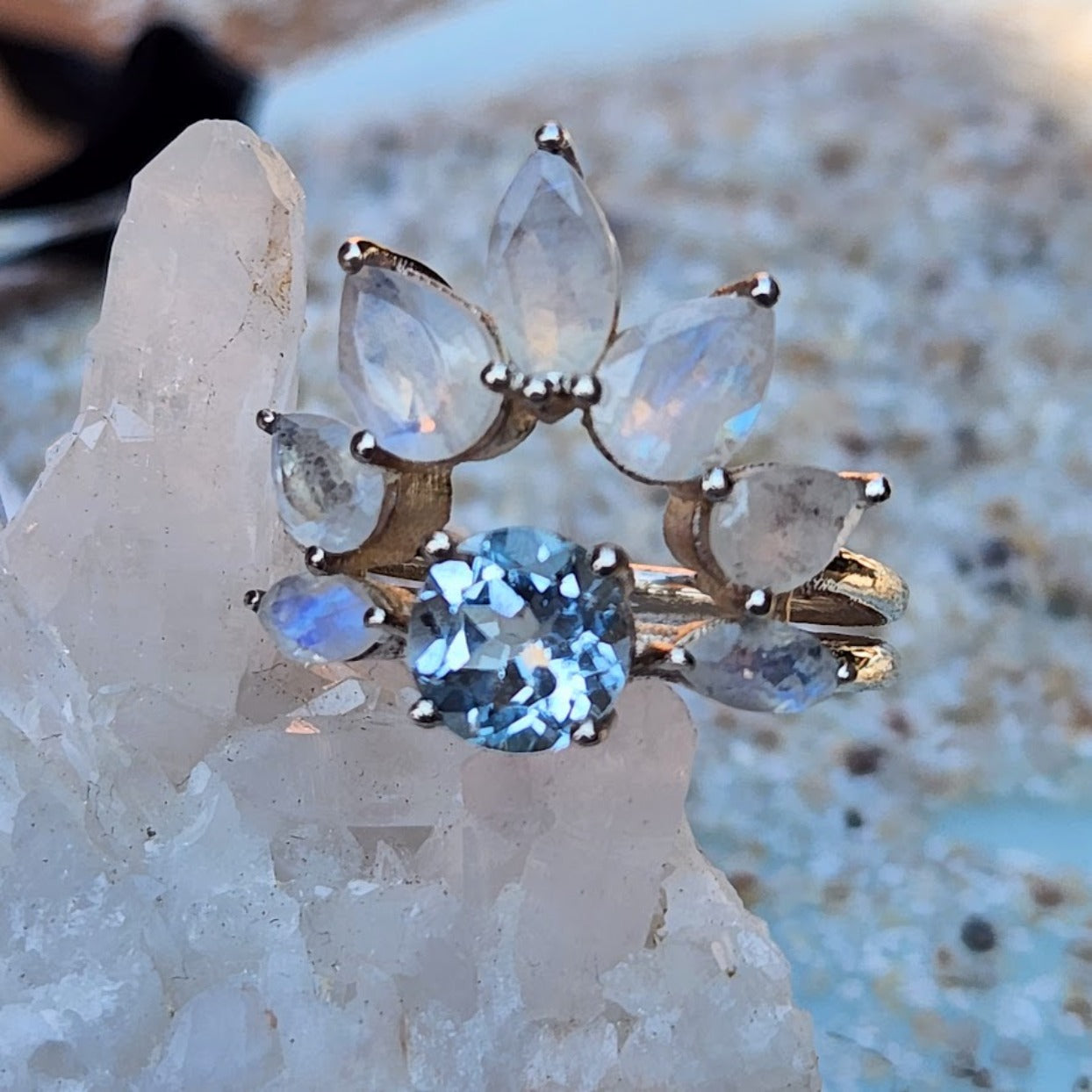BLUE MOON FLOWER - AQUAMARINE & MOONSTONE 925 RING