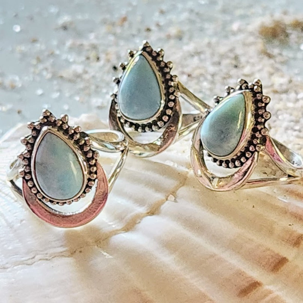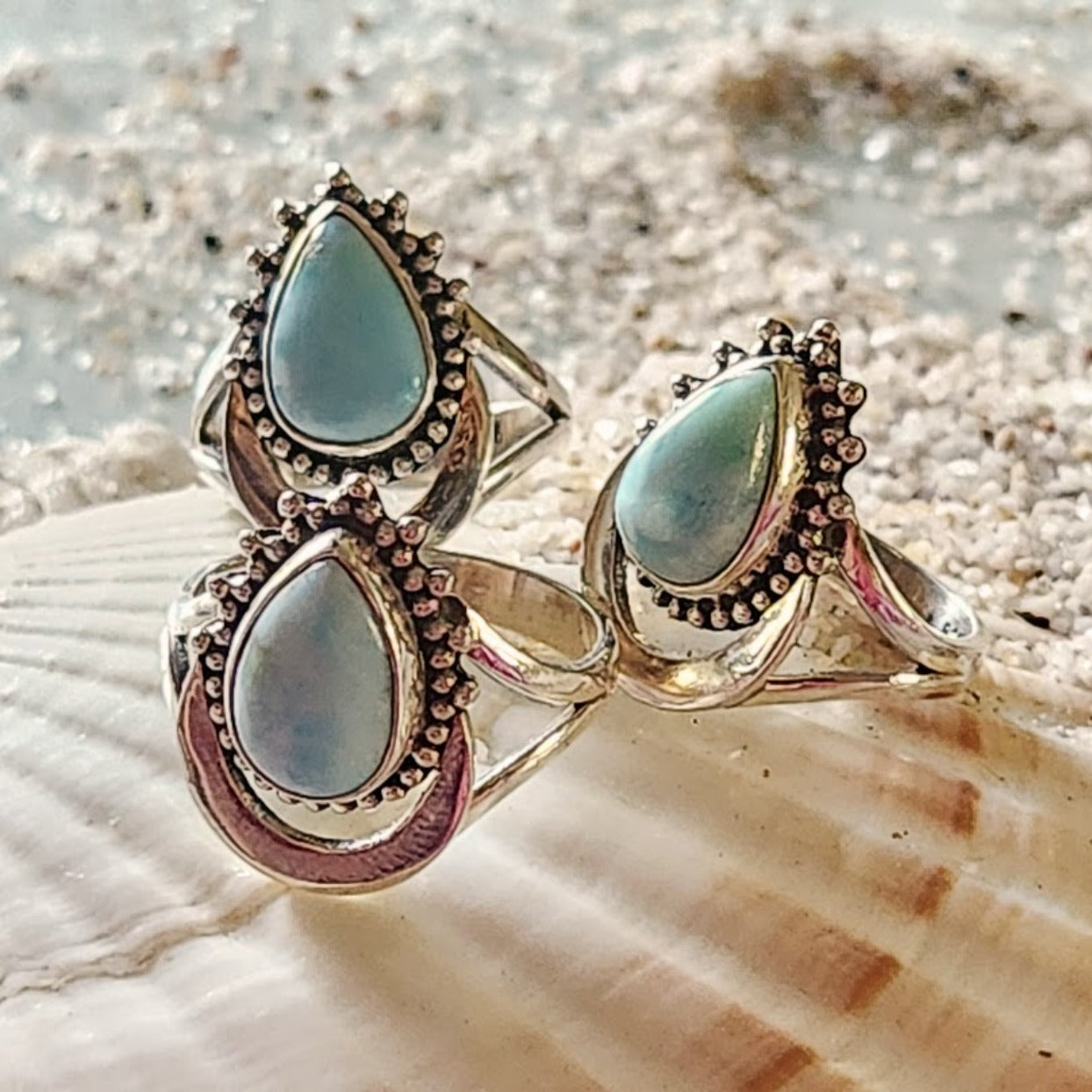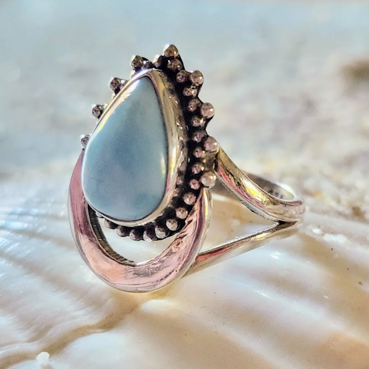Larimar Teardrop Crescent Moon 925 Sterling Silver ring