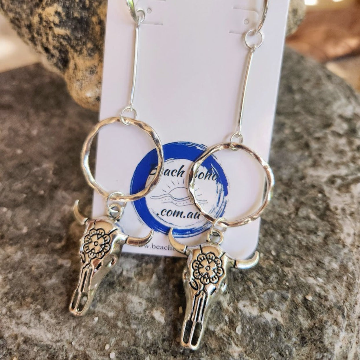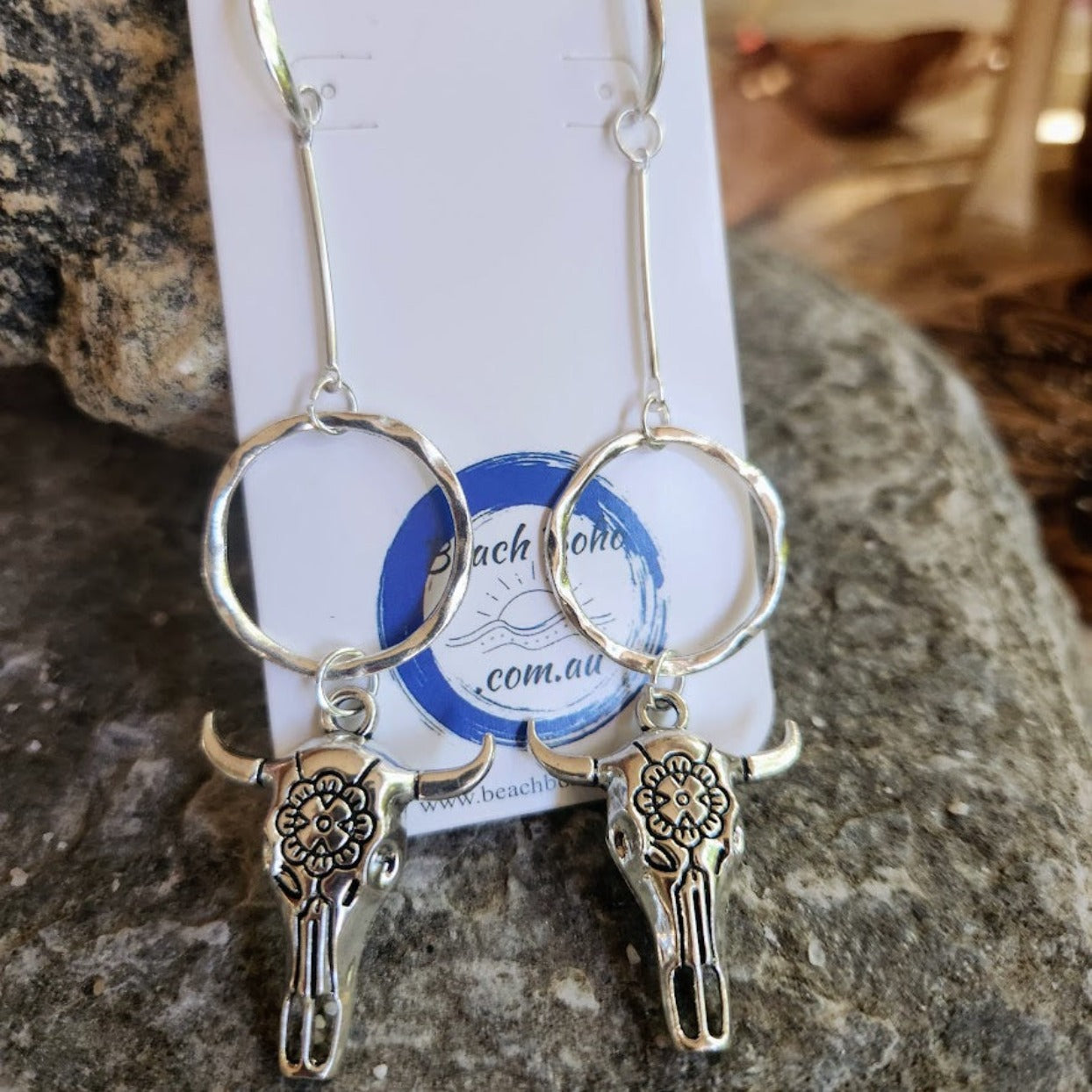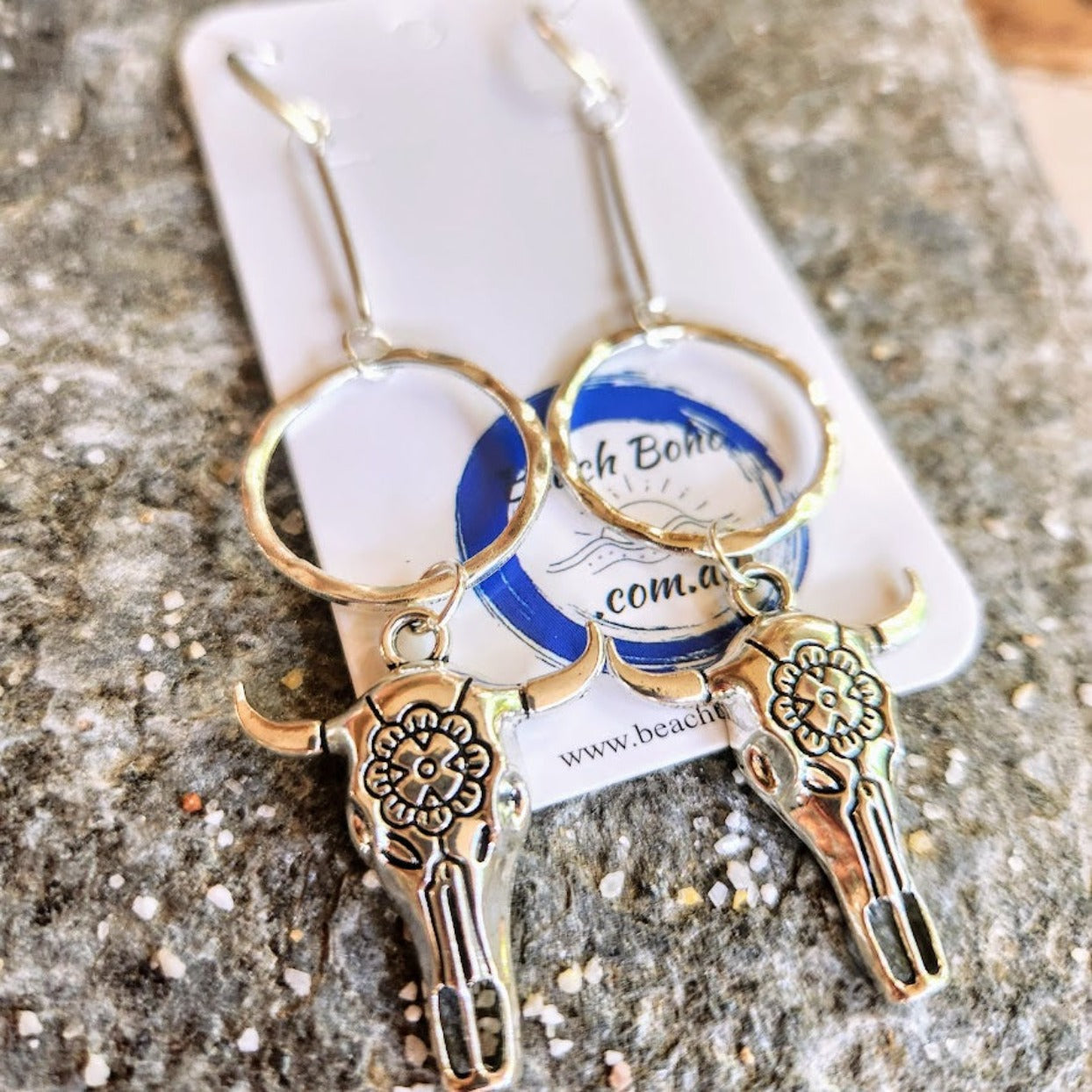 BOHO BULL DANGLES - SILVER HOOK EARRINGS
