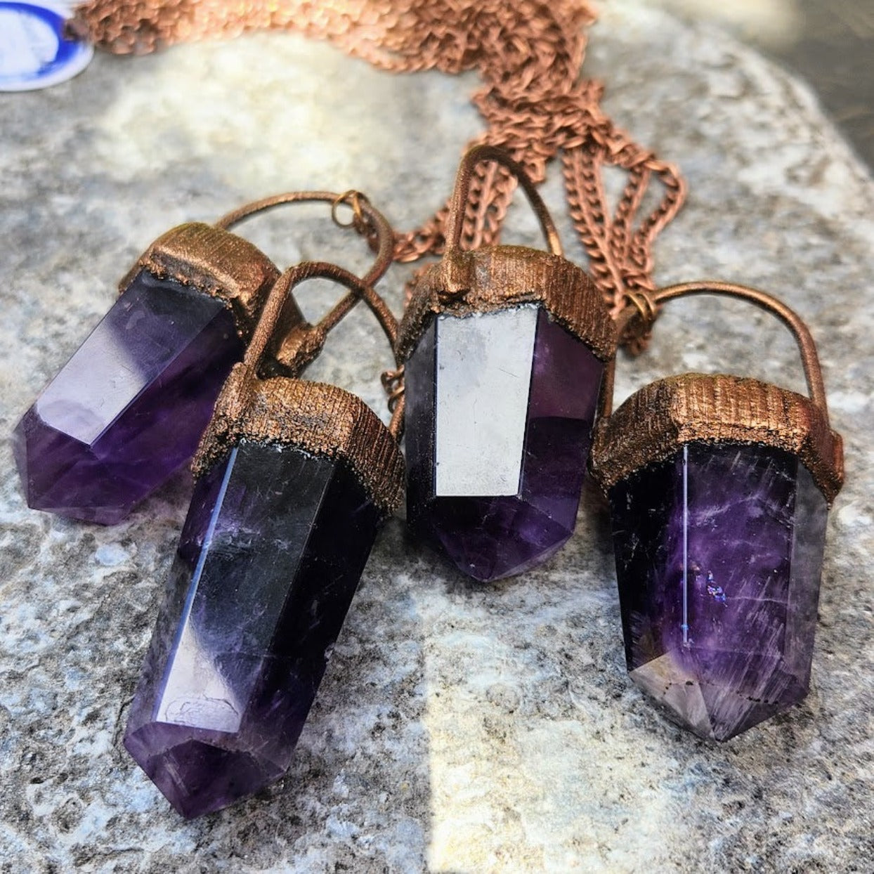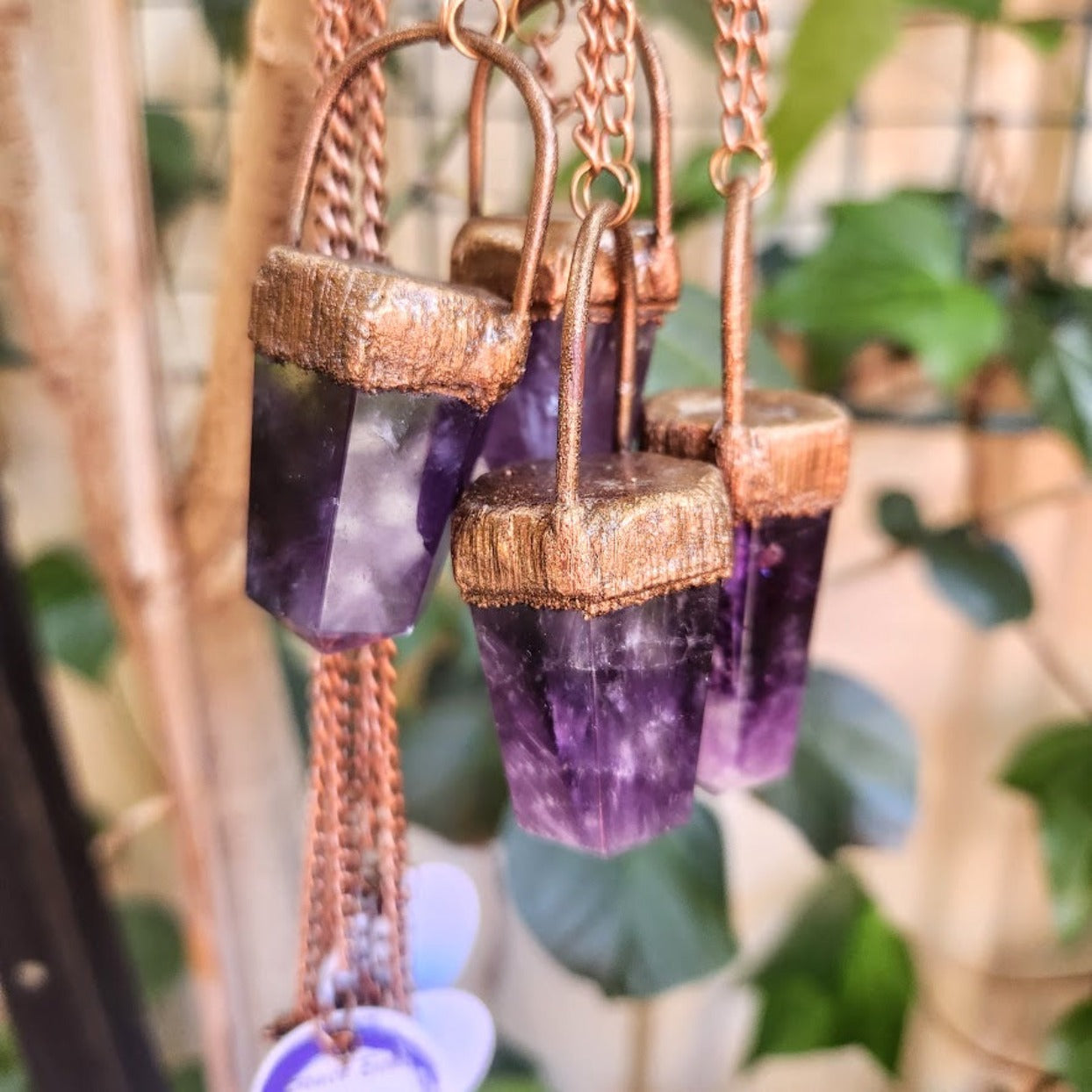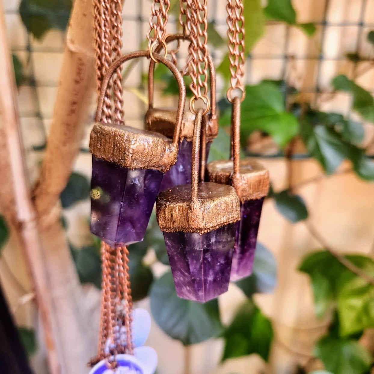 Handmade Boho Amethyst Copper Pendants / Wicca Inspired for Calm and Peacefulness