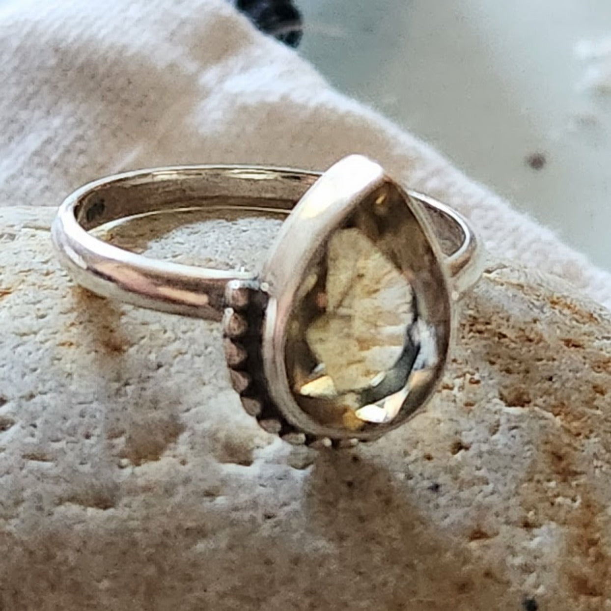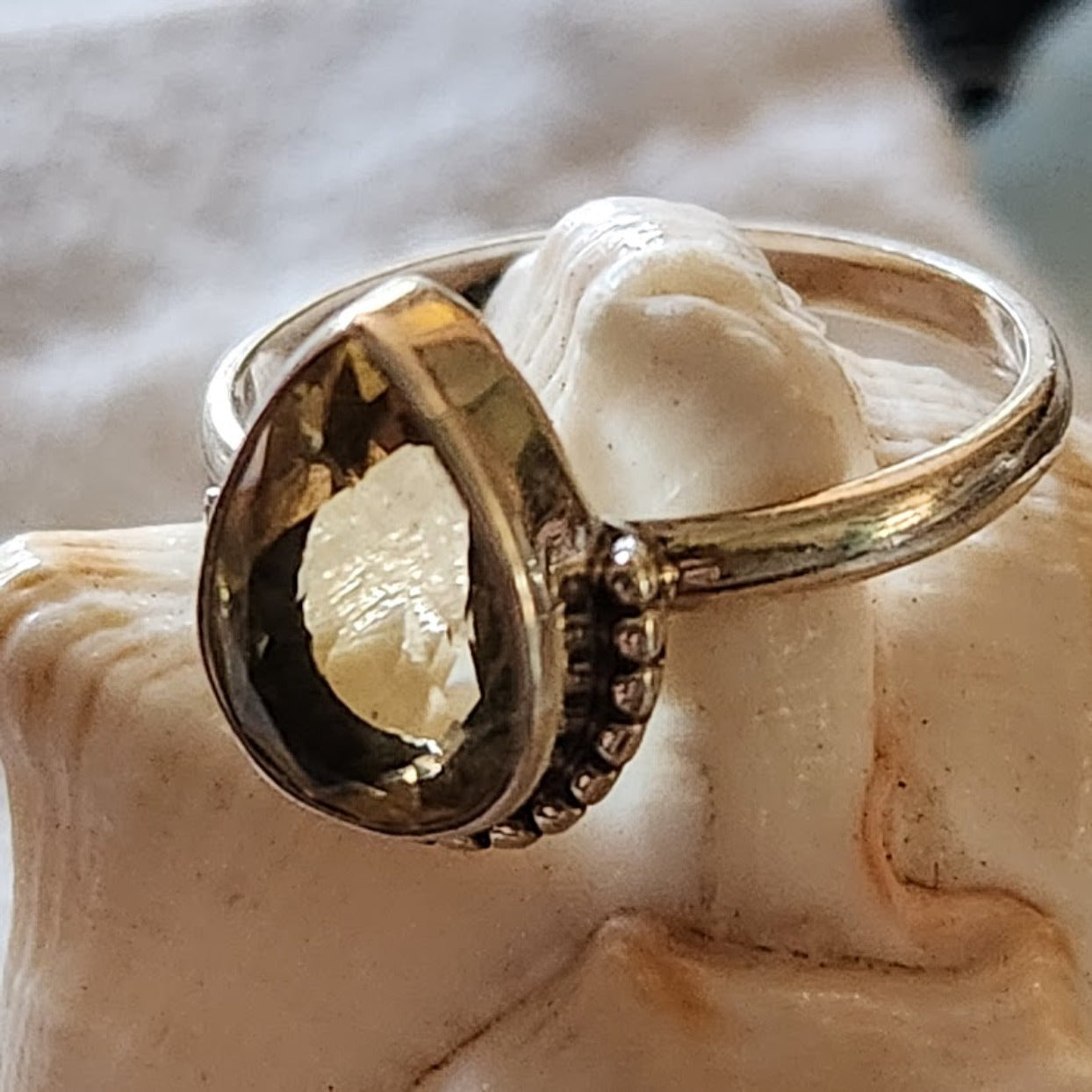 Citrine Beaded 925 Sterling Silver Ring