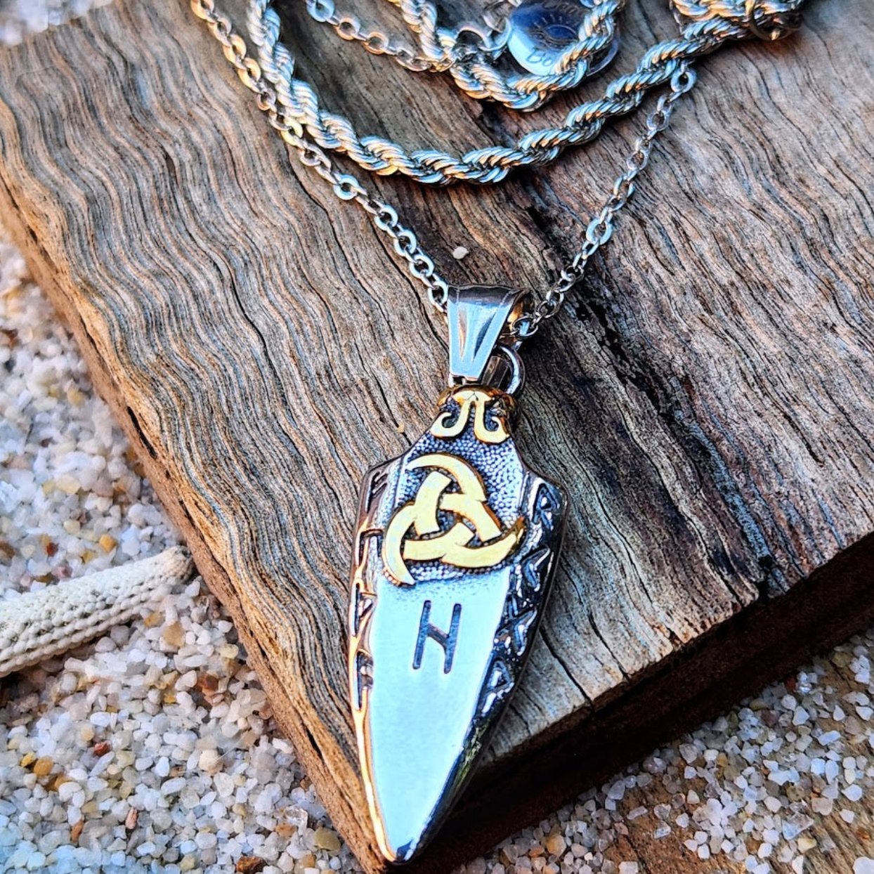 VIKING RUNE NECKLACE SILVER & GOLD WATERPROOF MEN'S DOUBLE CHAIN NECKLACE