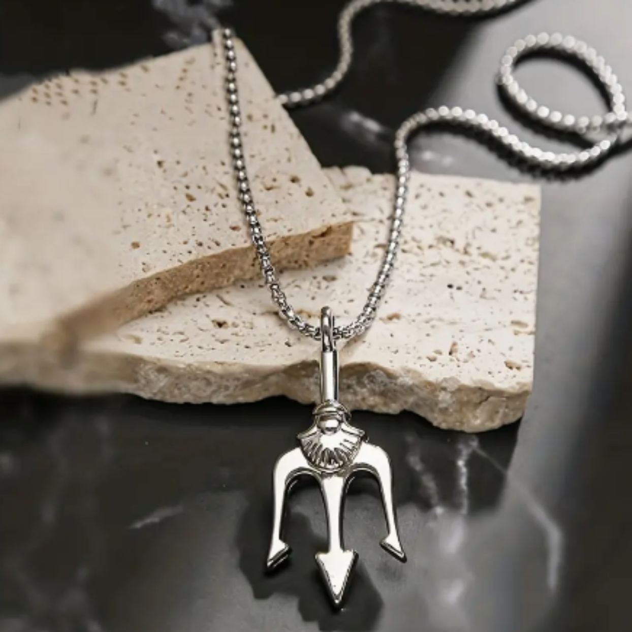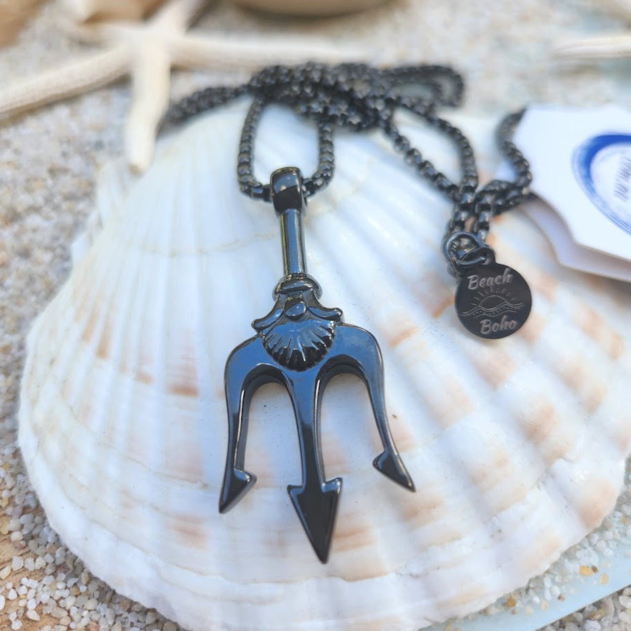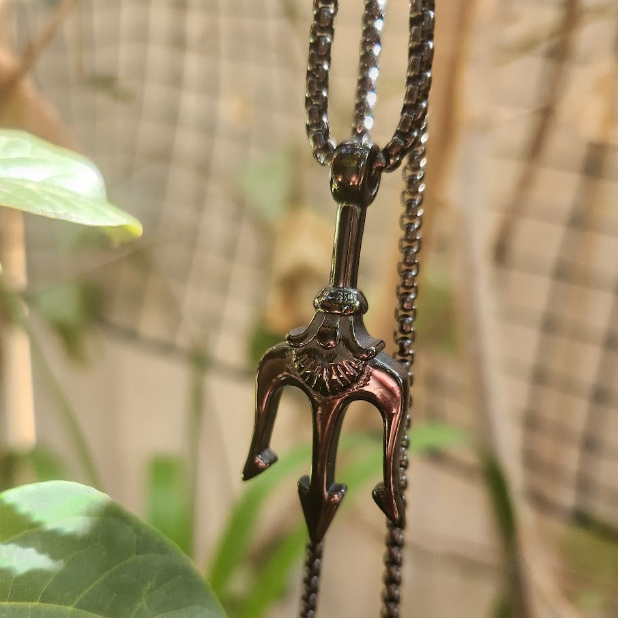Black Or Silver Stainless Steel Trident Pendant (Pendant 2.5 width x 3 cm length)