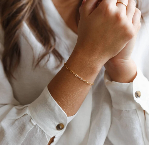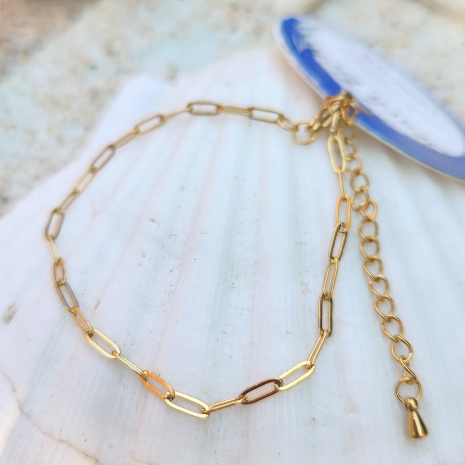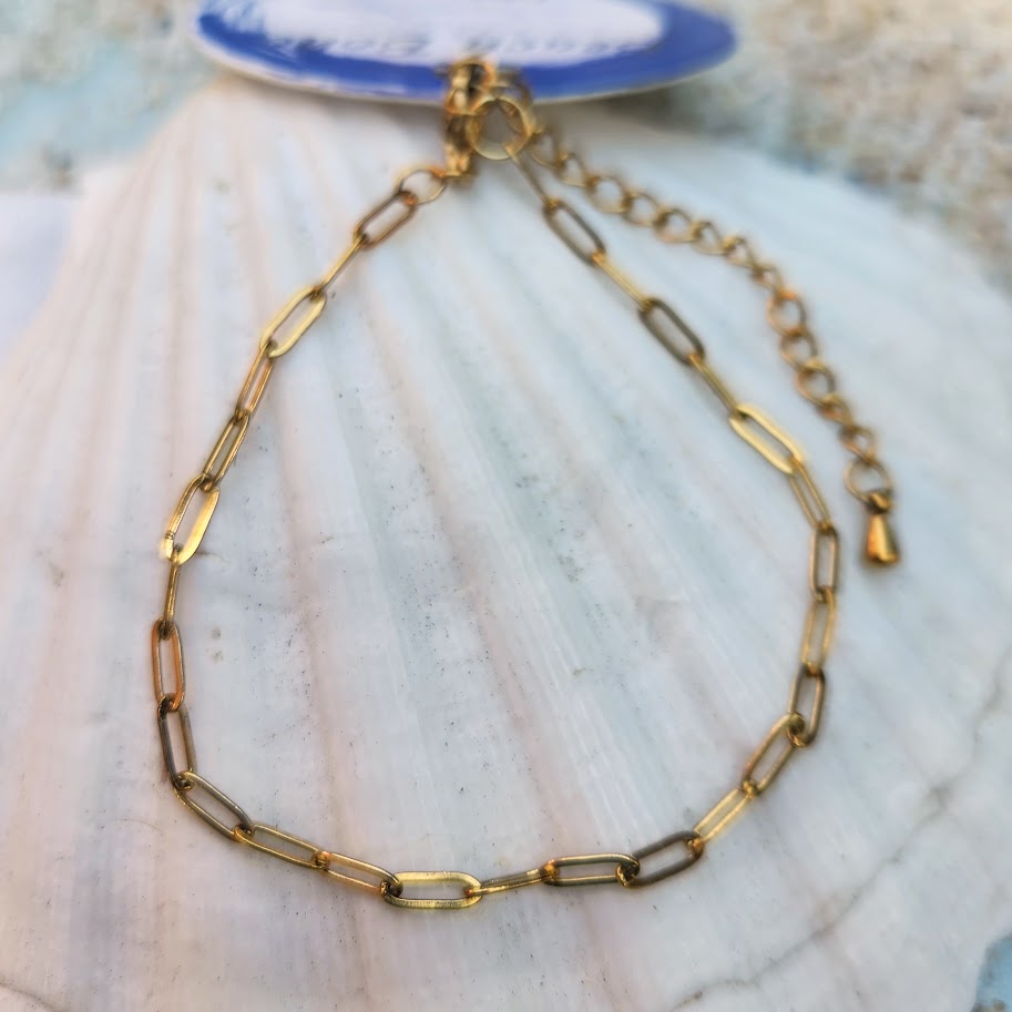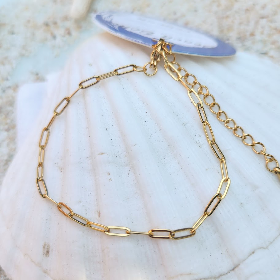 18k GOLD PAPERCLIP CHAIN WATERPROOF BRACELET