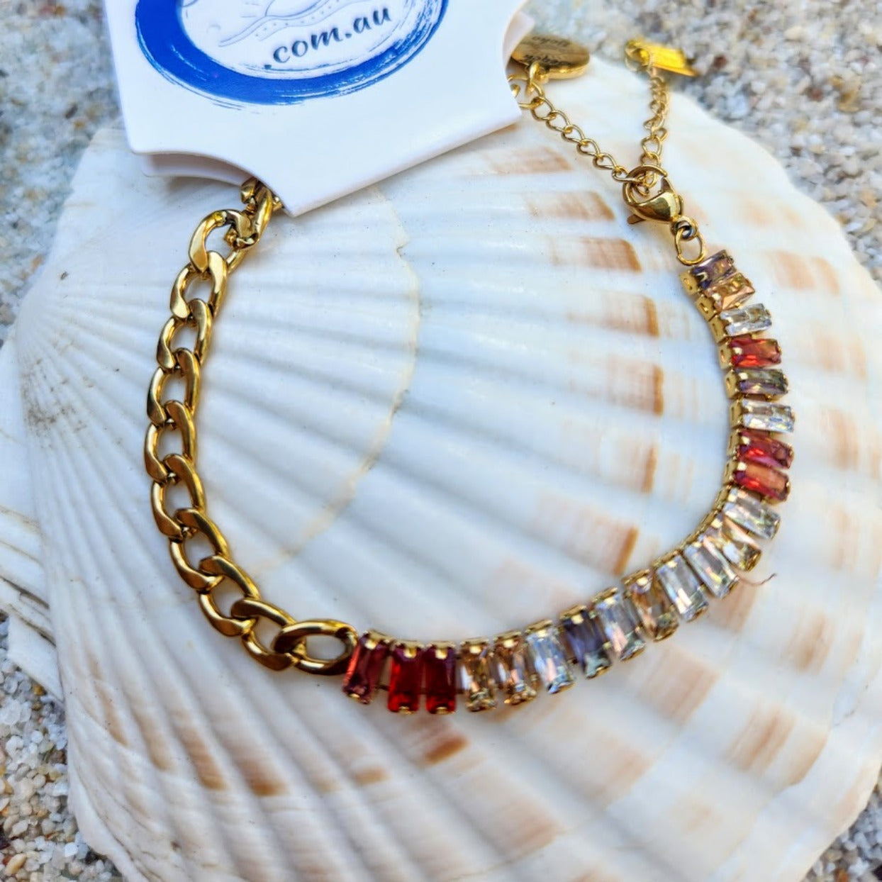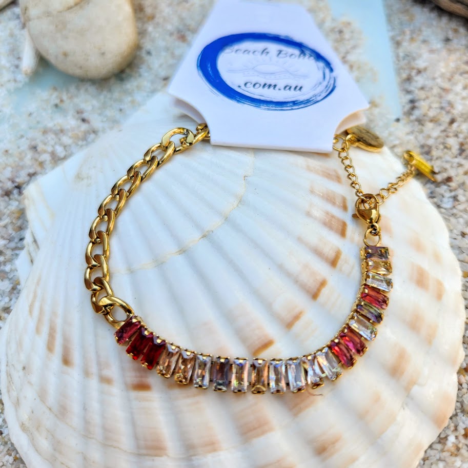 Arcencle (Rainbow) Cubic Zirconia 18k Gold Bracelet Waterproof Chain Bracelet 6.5 inch with 5 cm Extension Ch