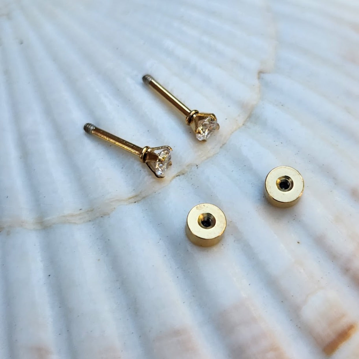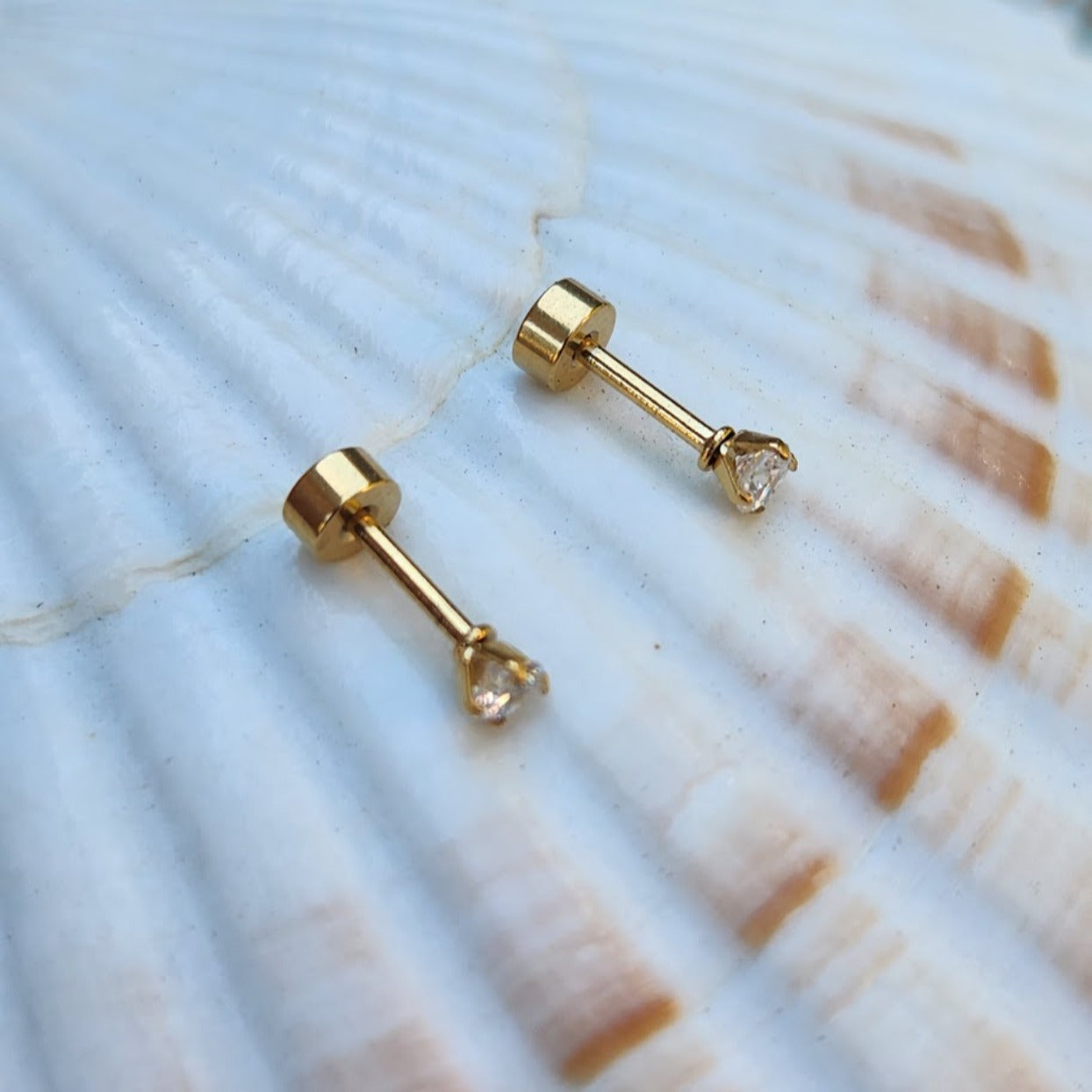 CUBIC ZIRCONIA - 18K GOLD WATERPROOF PIERCING STUD EARRINGS