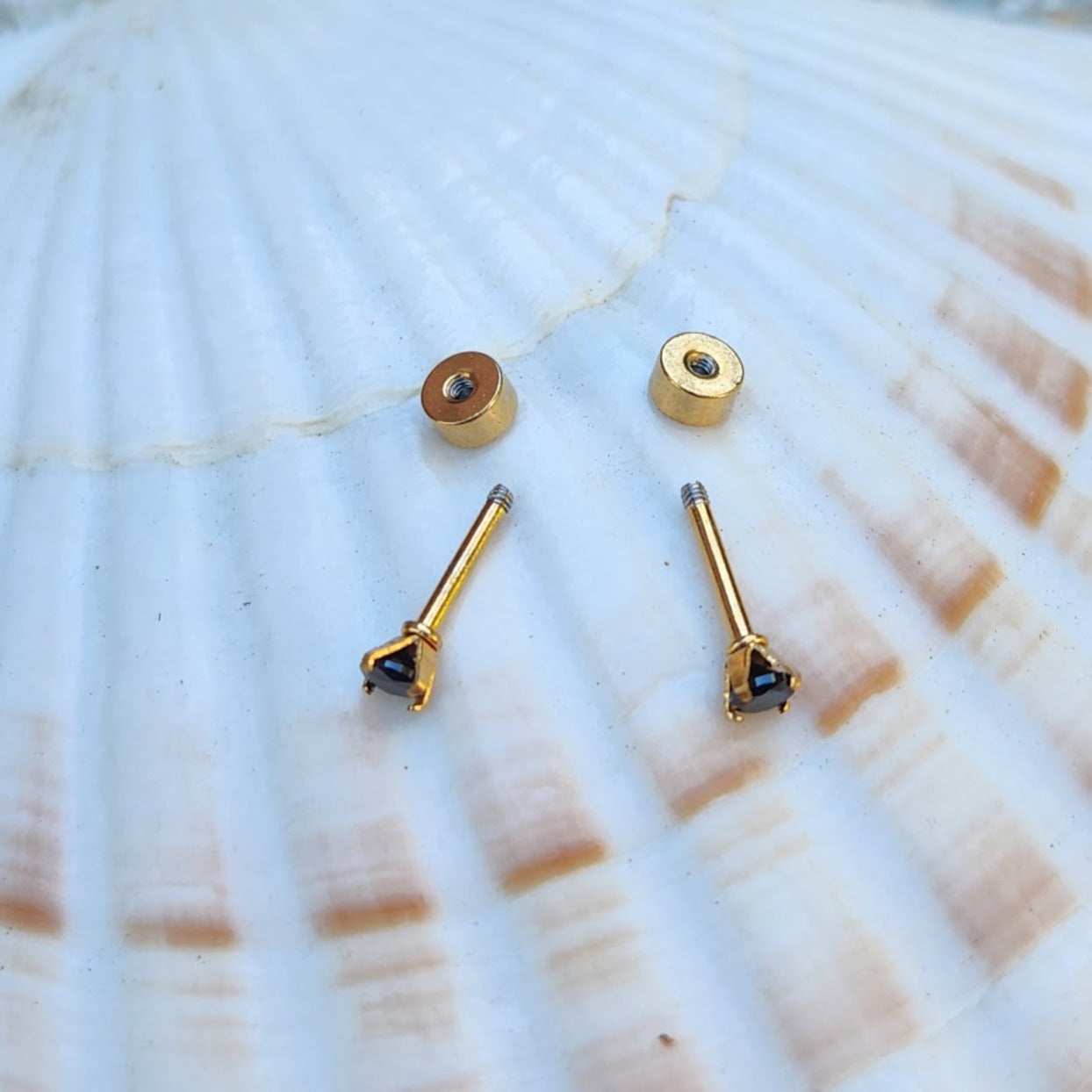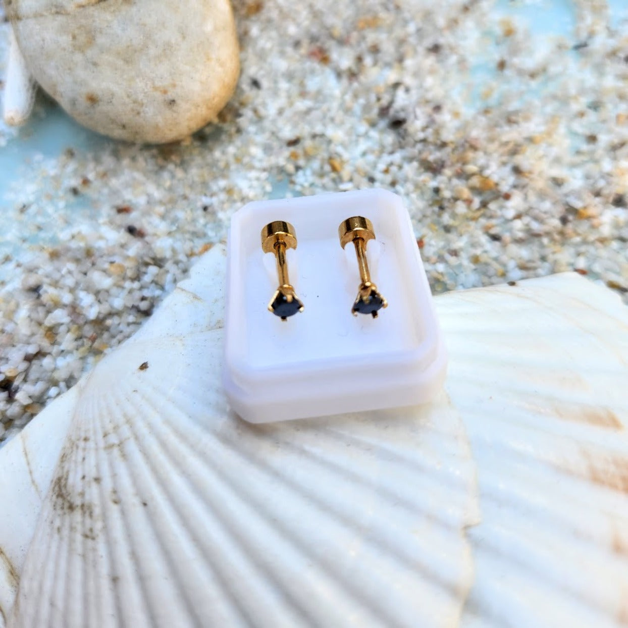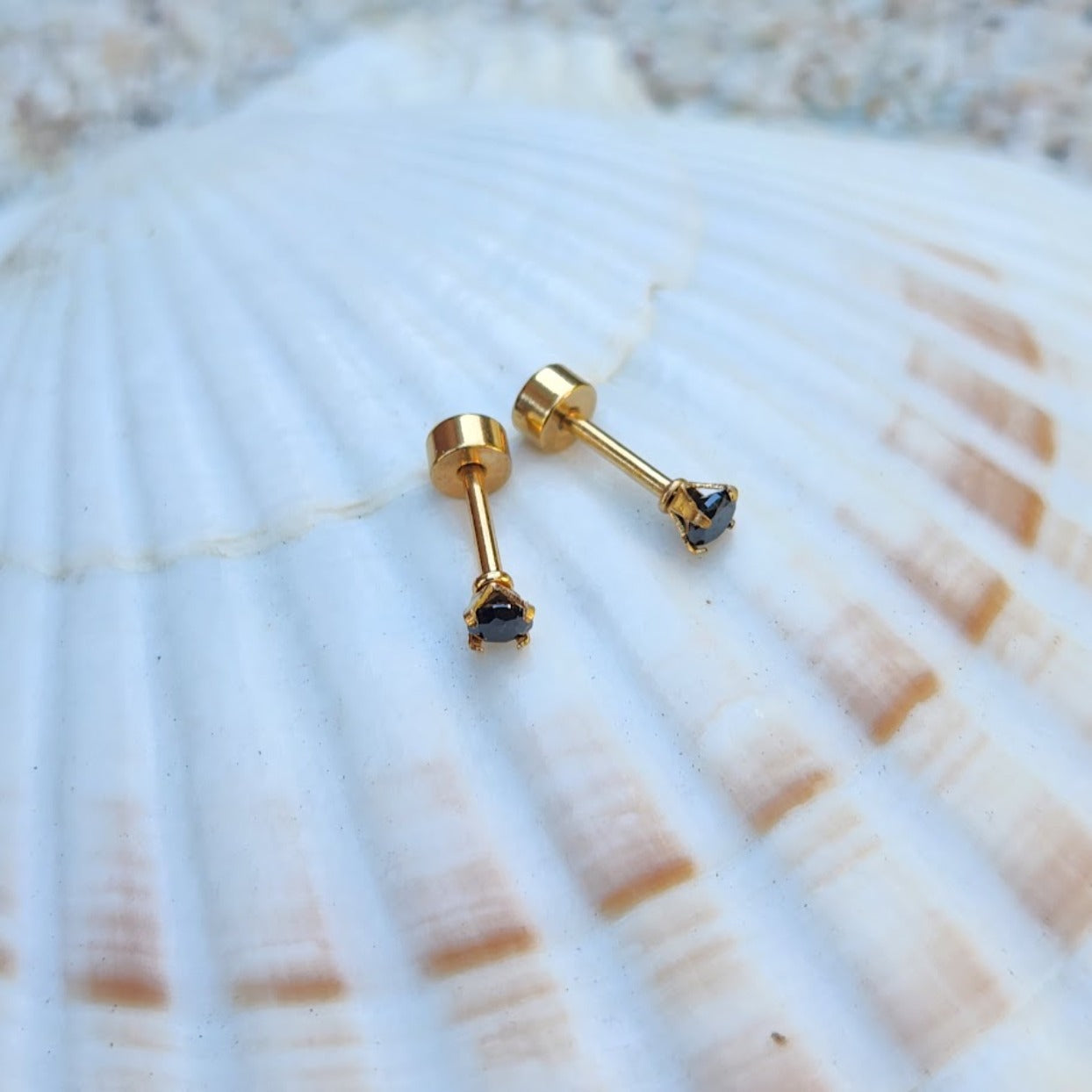 Crystal Clear Or Black Cubic Zirconia Piercing Baby Screw Earrings made with Titanium Steel Tarnish Resistant Jewellery 3 mm