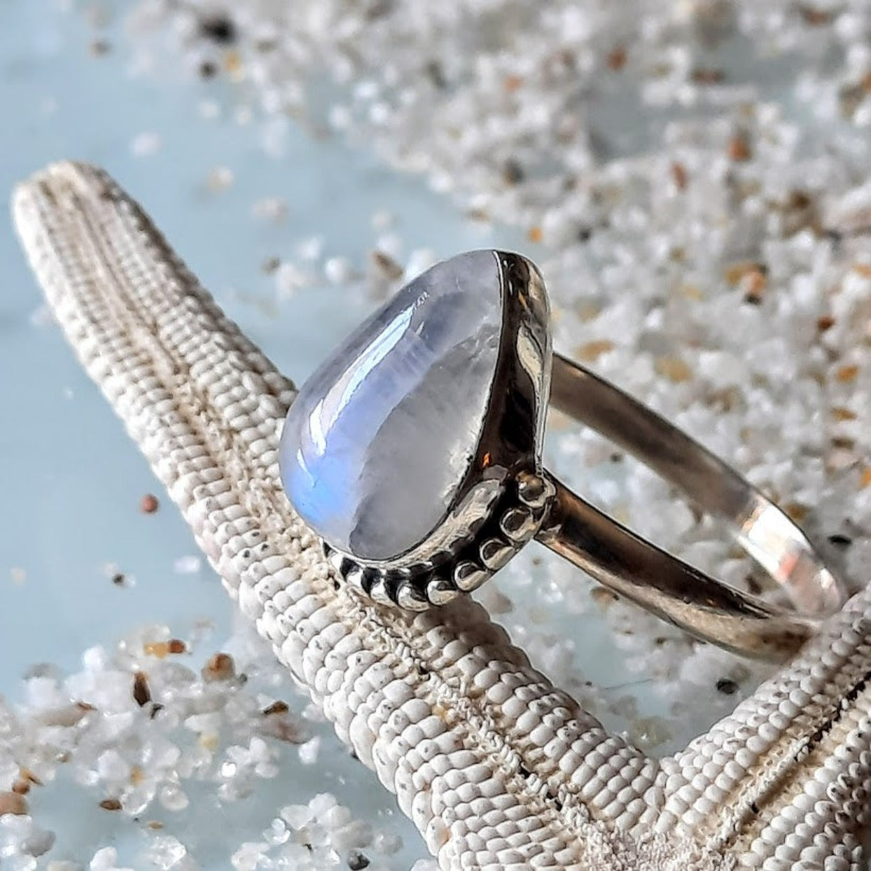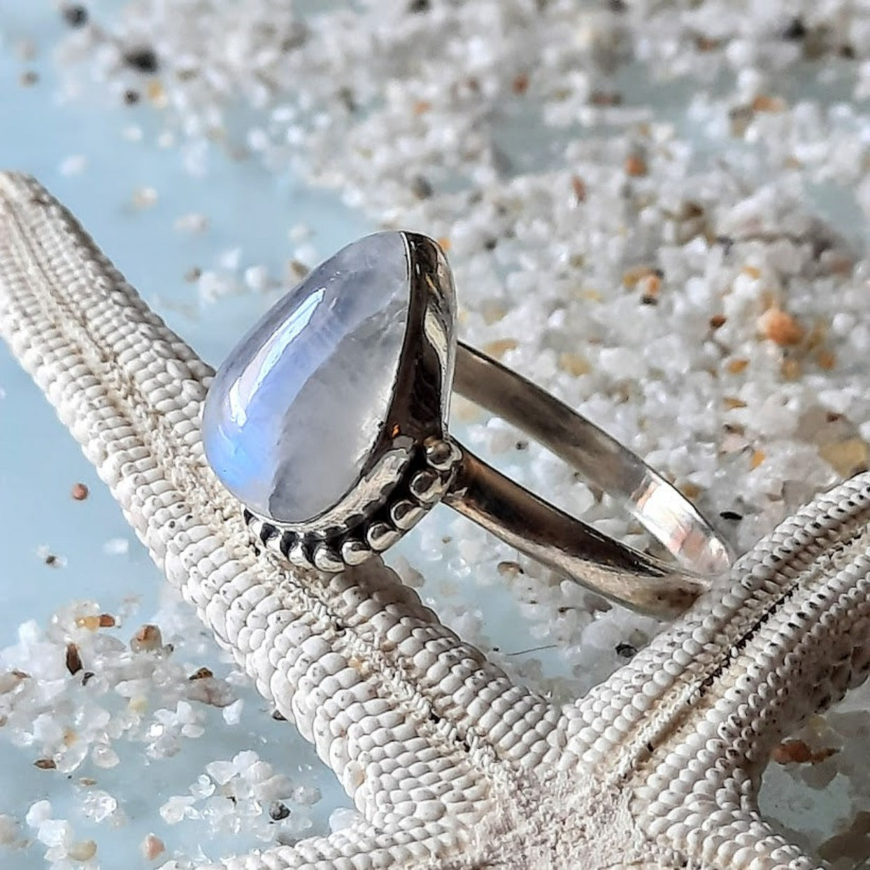 Moonstone Half Beaded 925 Sterling Silver Ring