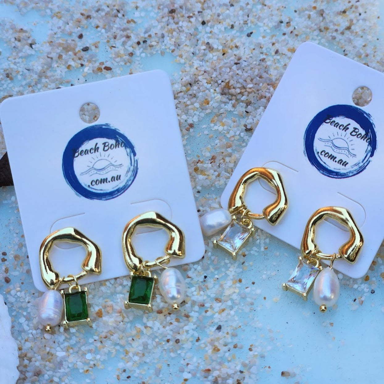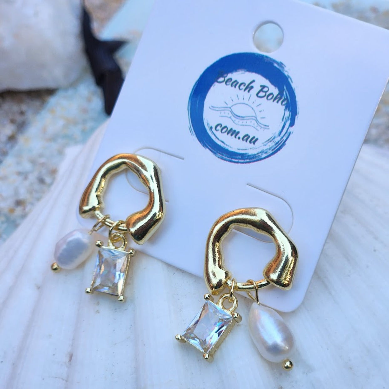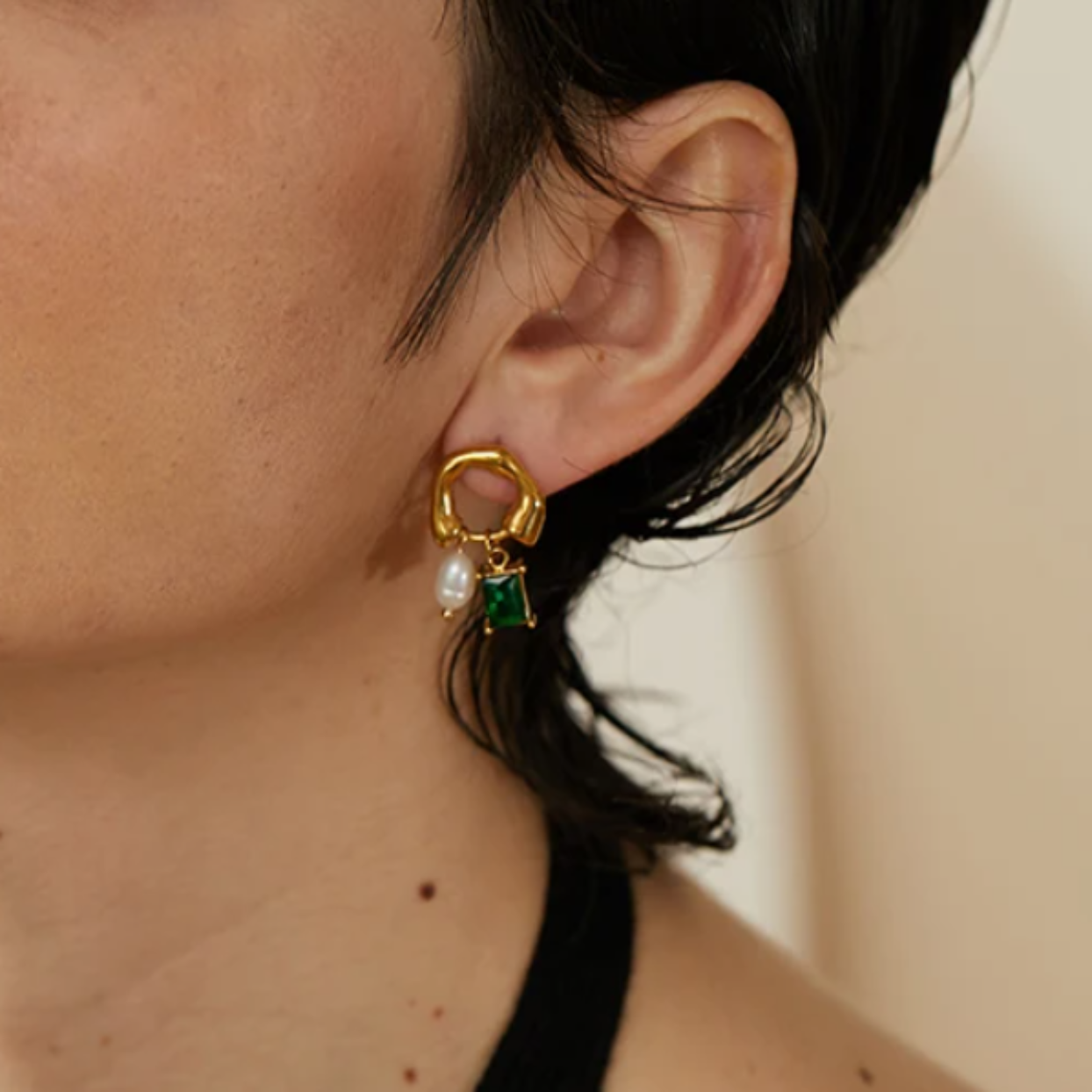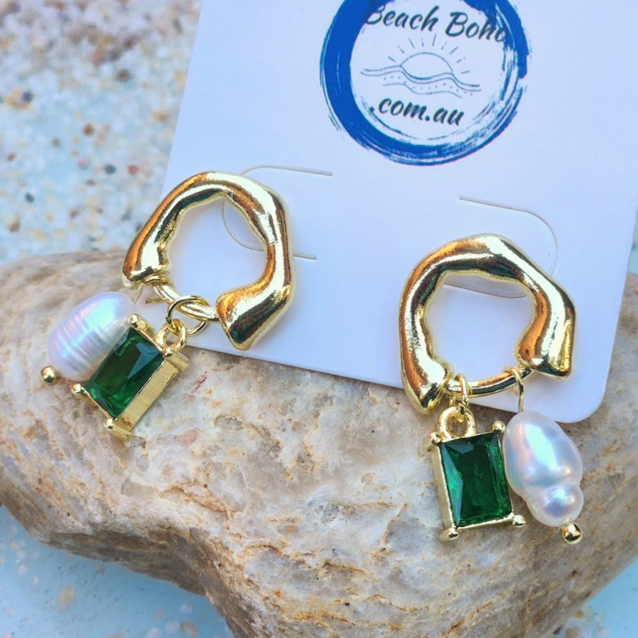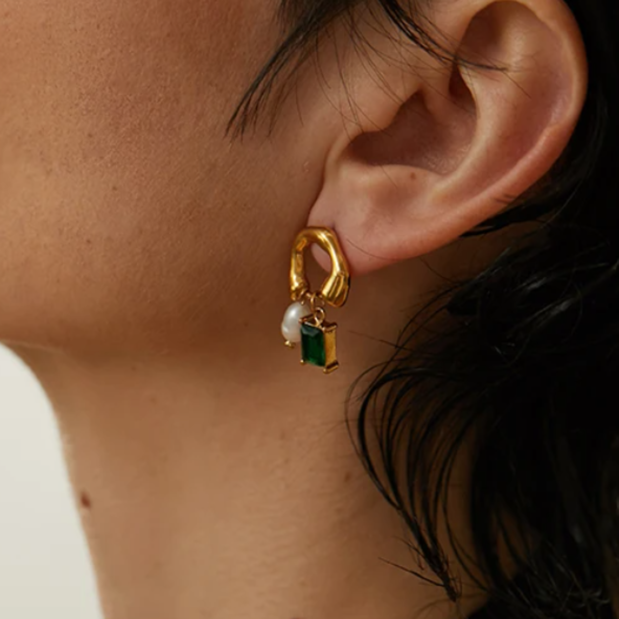 BAROQUE PEARL CUBIC ZIRCONIAN / EMERALD GOLD - WATERPROOF EARRINGS