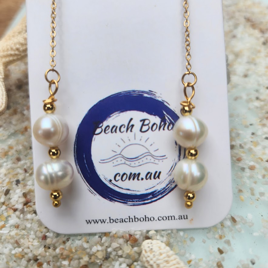 DOUBLE BAROQUE WHITE PEARL GOLD THREAD EARRINGS